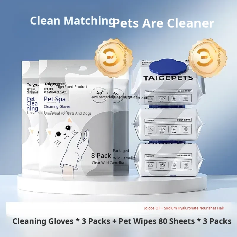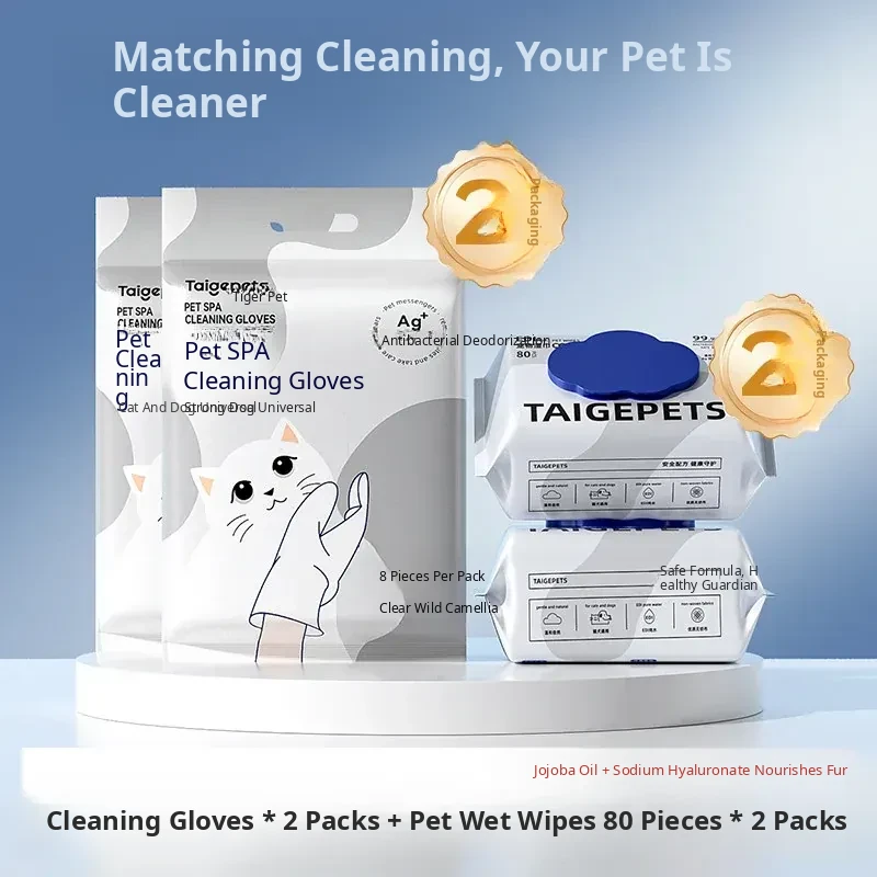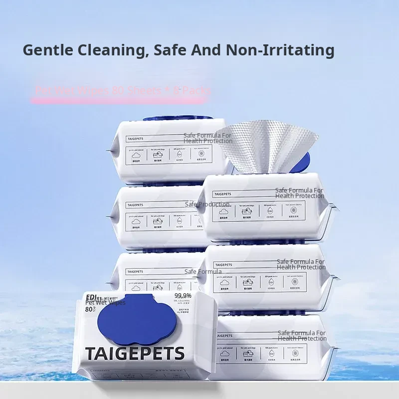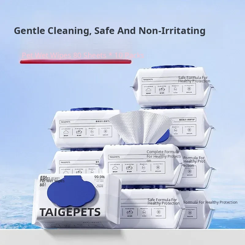 【10 Packs of 80 Sheets Each】Pet Wet Wipes for Cats and Dogs - 590g per Pack, Silver Ion Antibacterial Formula, Perfect for Quick Cleanups and Hygiene Care!