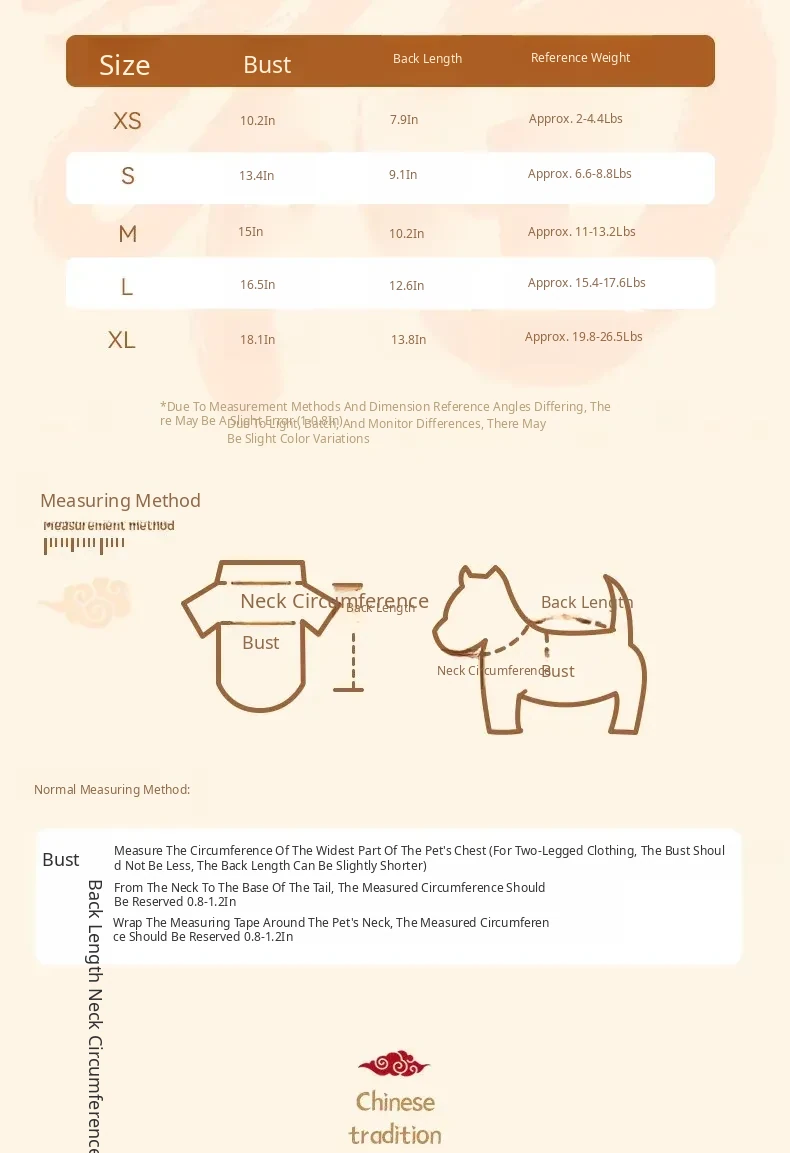 Xs: Bust Size 10.24in, Back Length 7.87in [Recoinended 0.5-1.0kg]