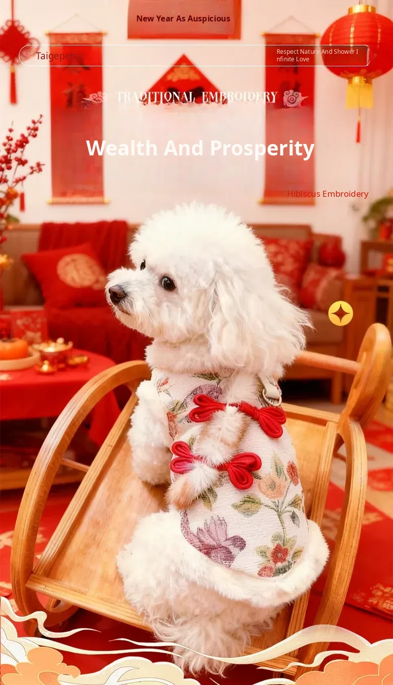 2026 New Year Chinese Style Pet Clothing for Cats and Dogs - Festive Warm Fleece Vests for Small to Medium Dogs, Perfect for Celebrating the New Year!