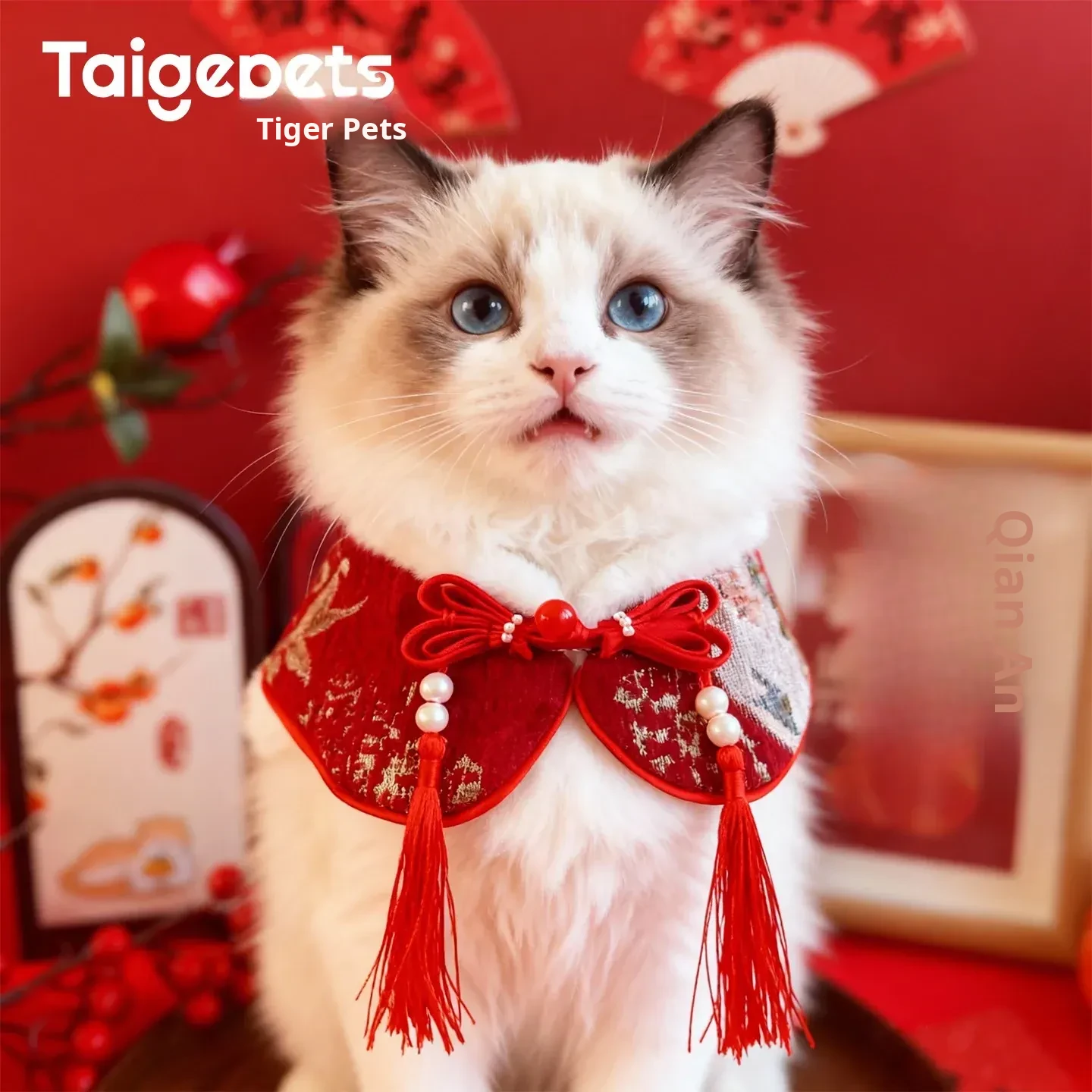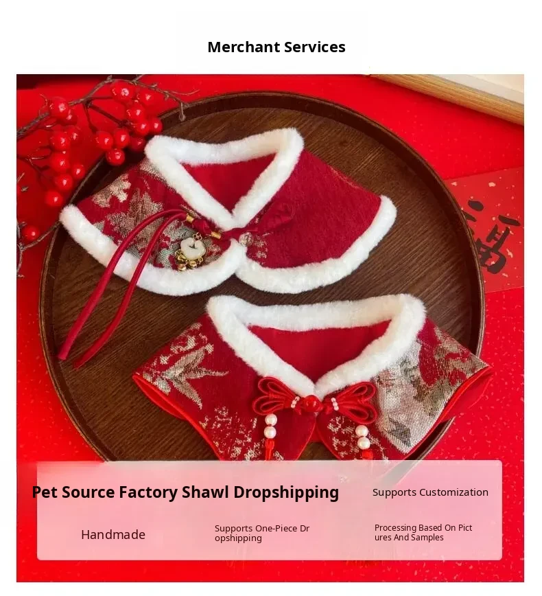 2026 New Year Pet Collar Scarf - Festive Dog and Cat Wrap with Traditional Chinese Style Design for Celebrating the New Year