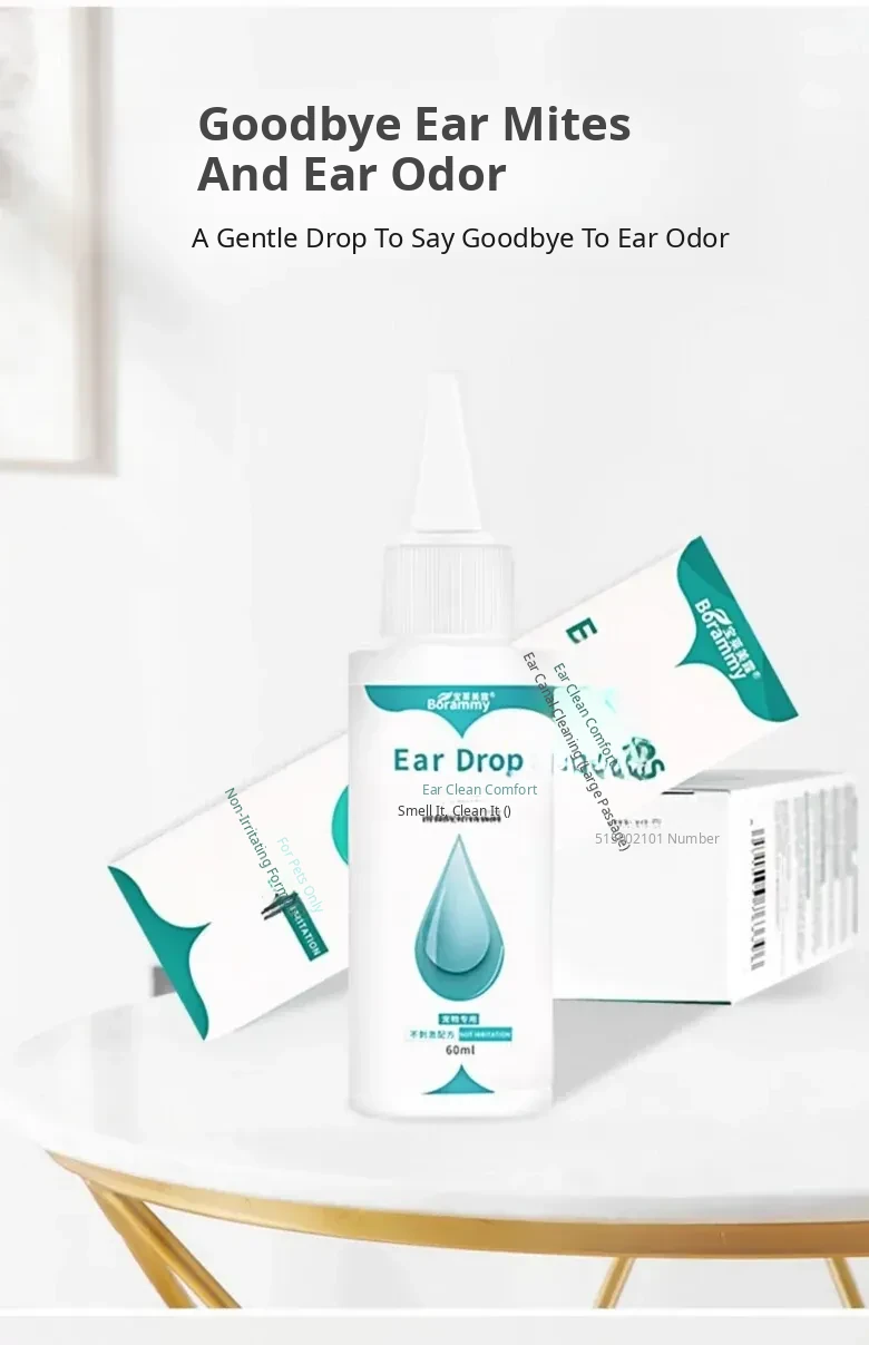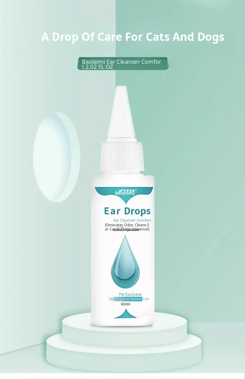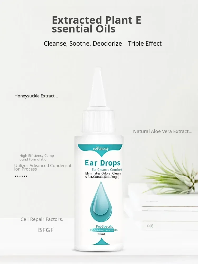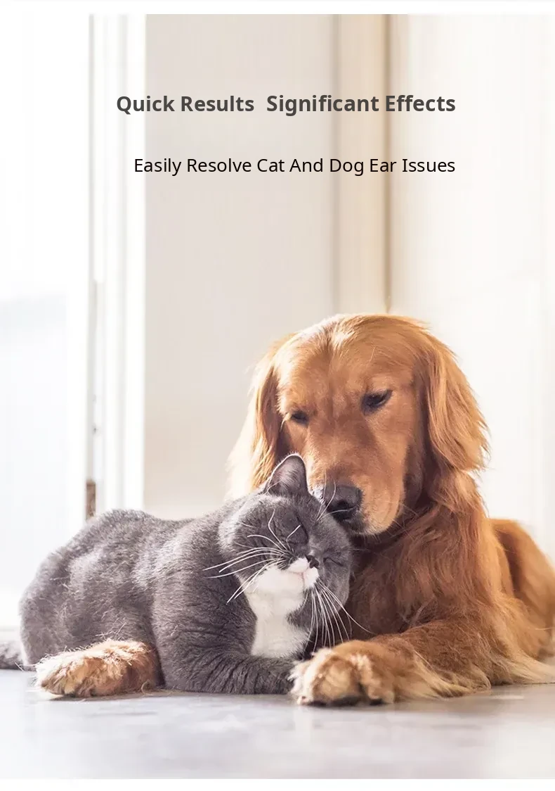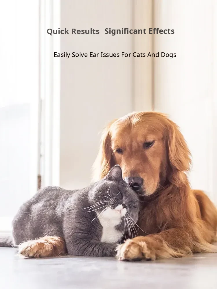 60ml Pet Ear Drops - Cat Ear Cleaner for Cats and Dogs, Anti-Inflammatory and Mite Removal Solution for Golden Retrievers and Other Breeds