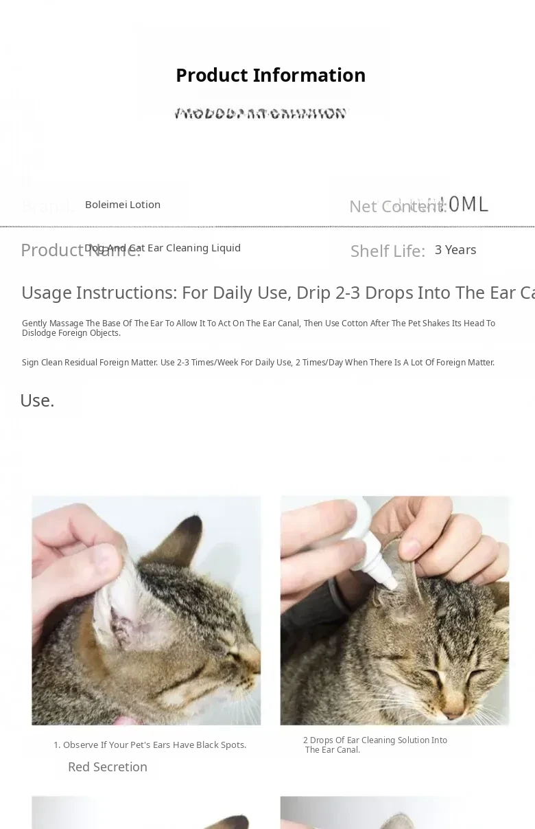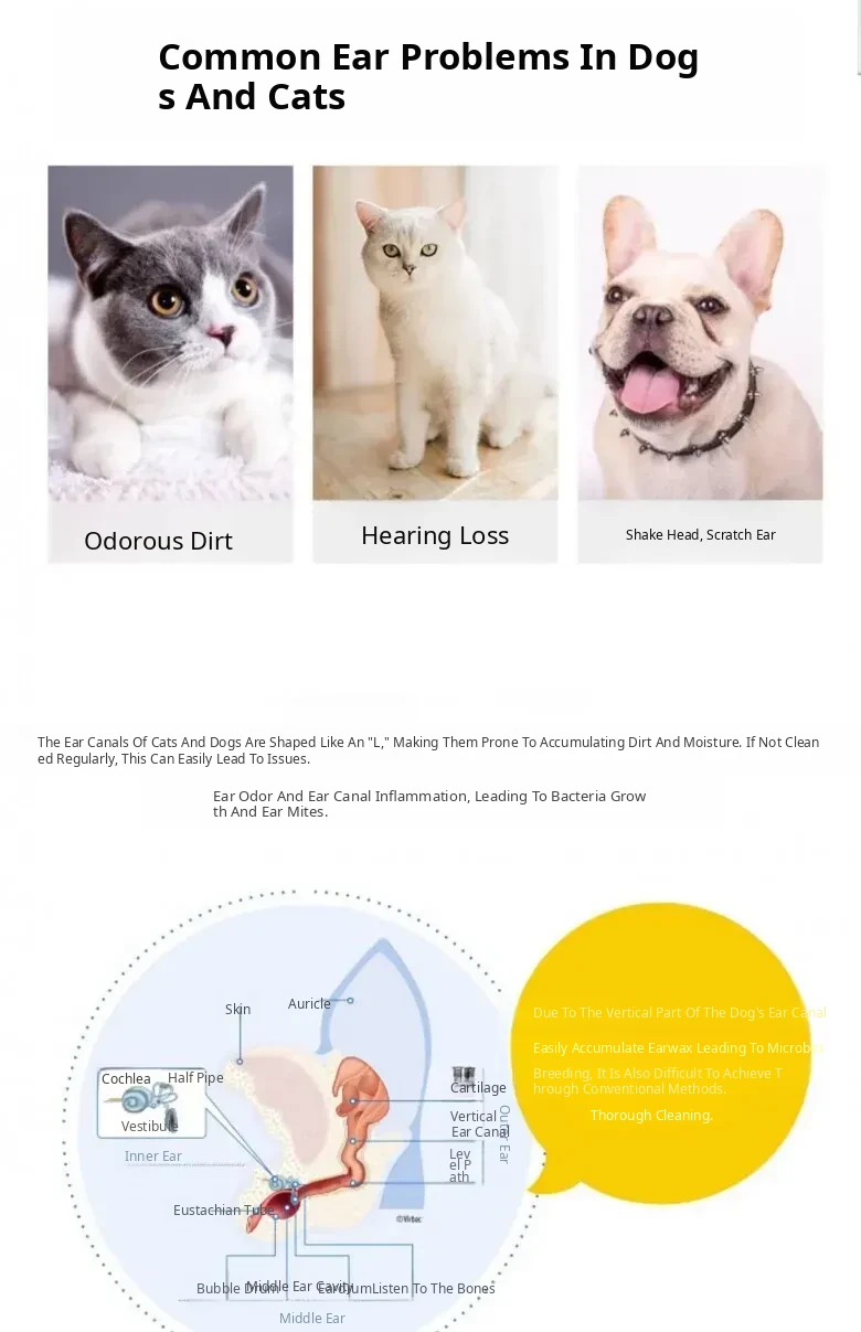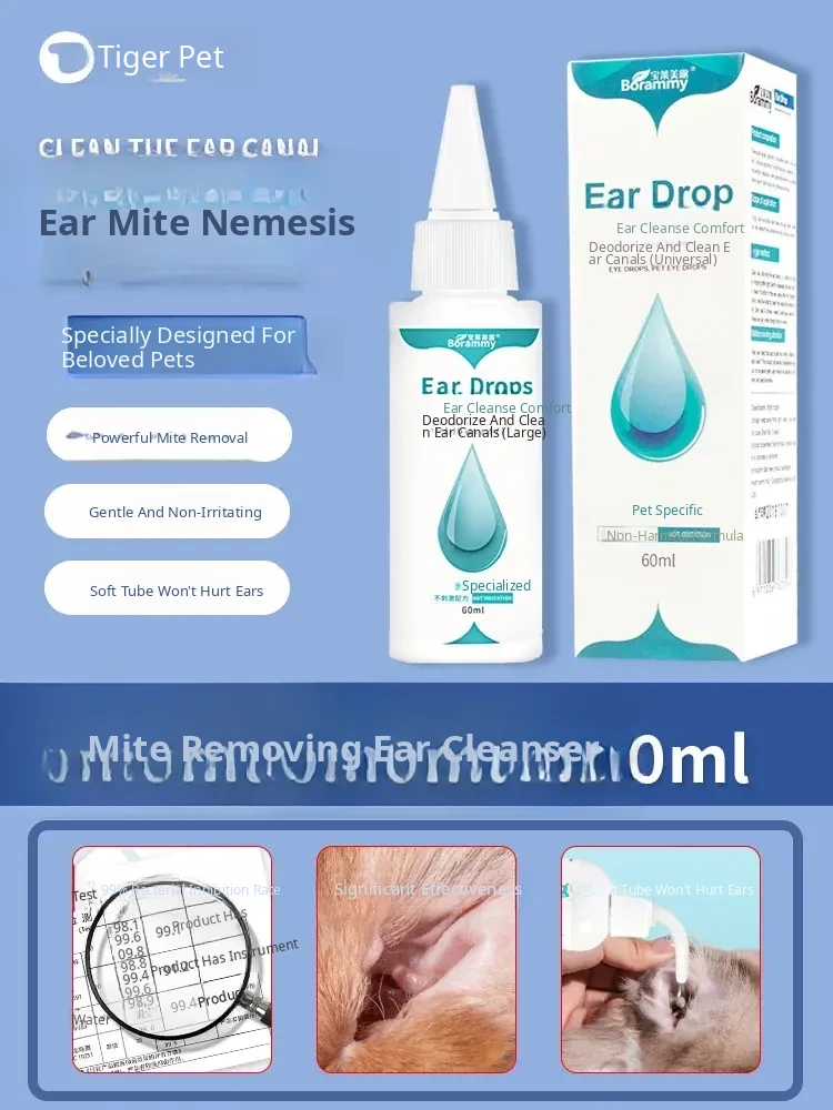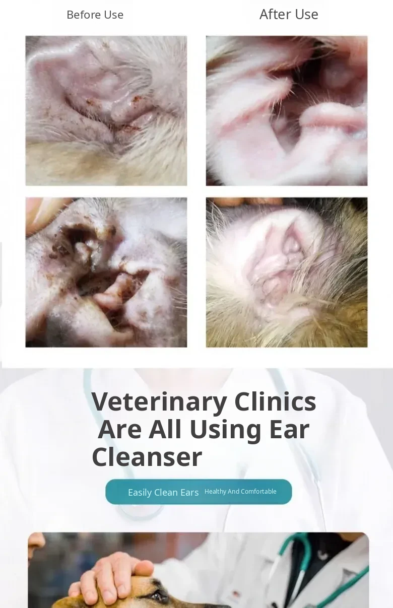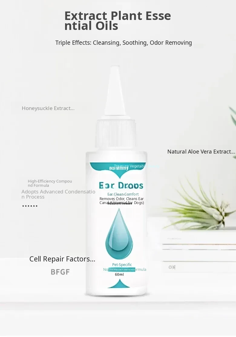 60ml Pet Ear Drops - Cat Ear Cleaner for Cats and Dogs, Anti-Inflammatory and Mite Removal Solution for Golden Retrievers and Other Breeds