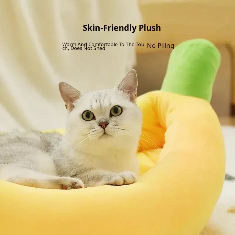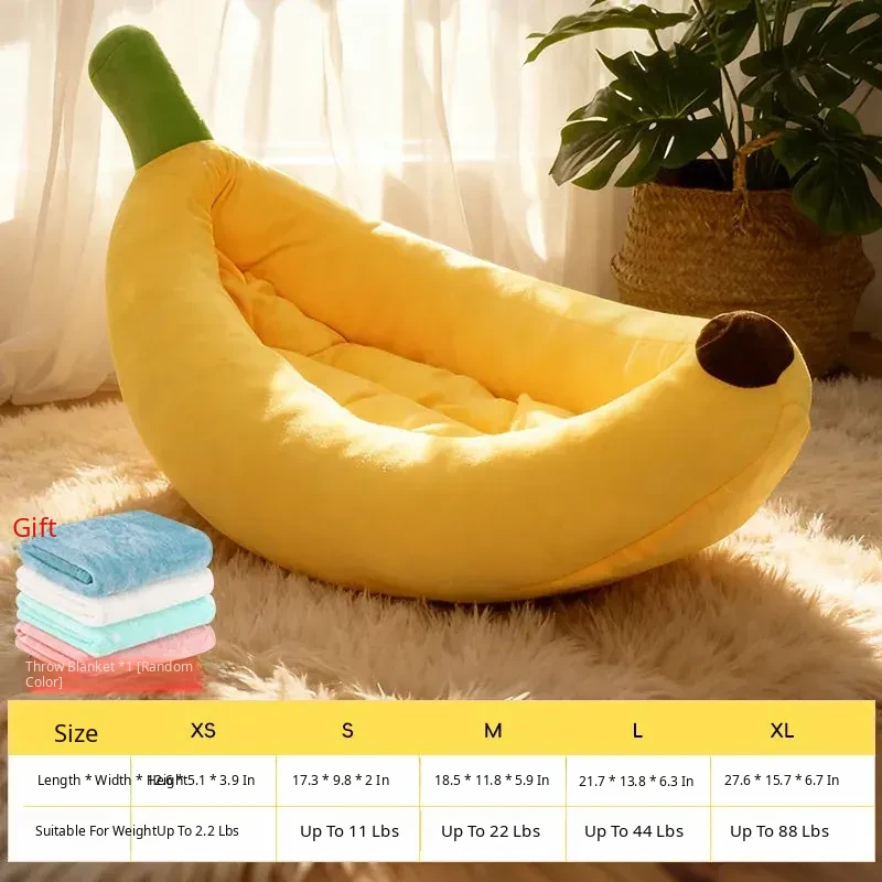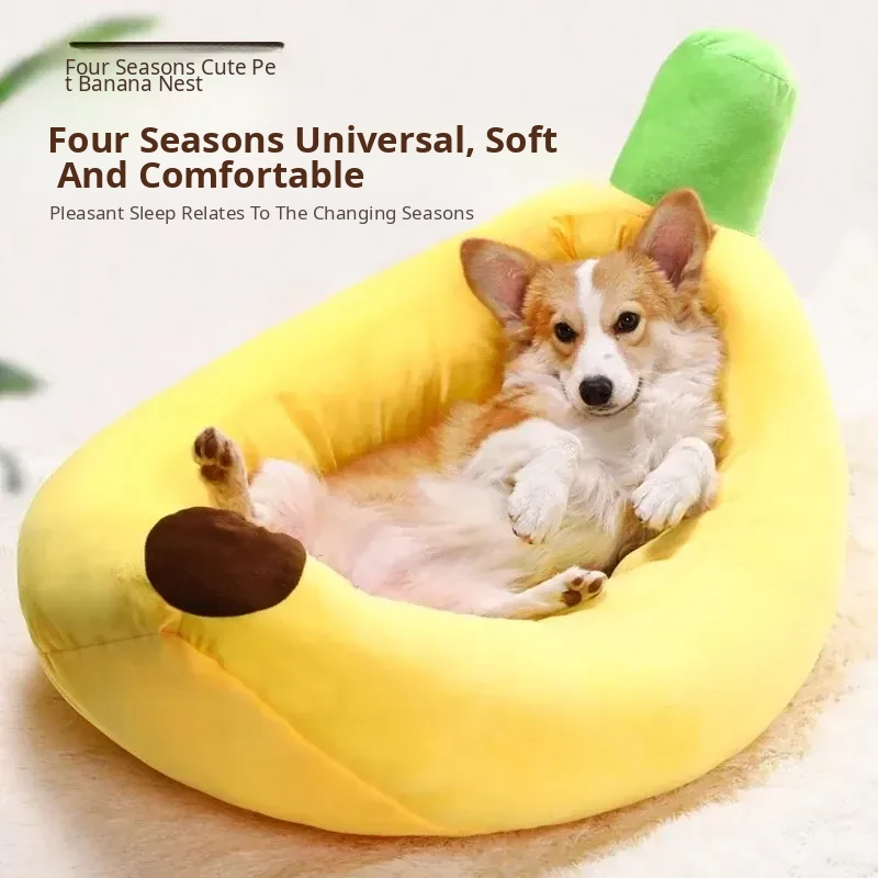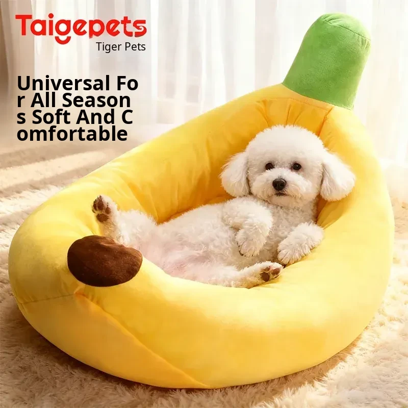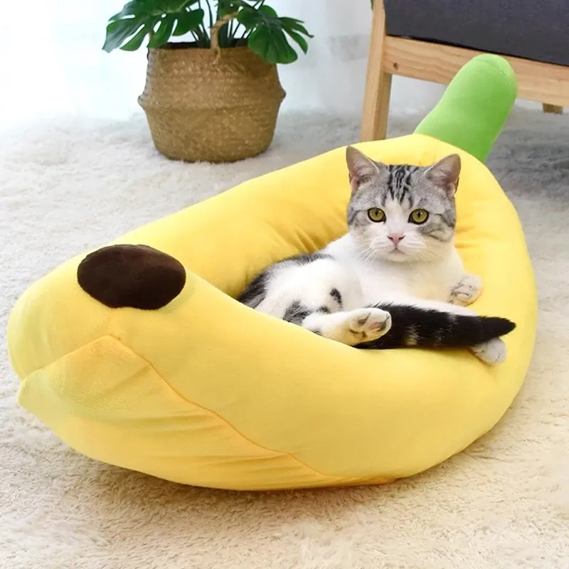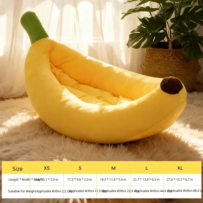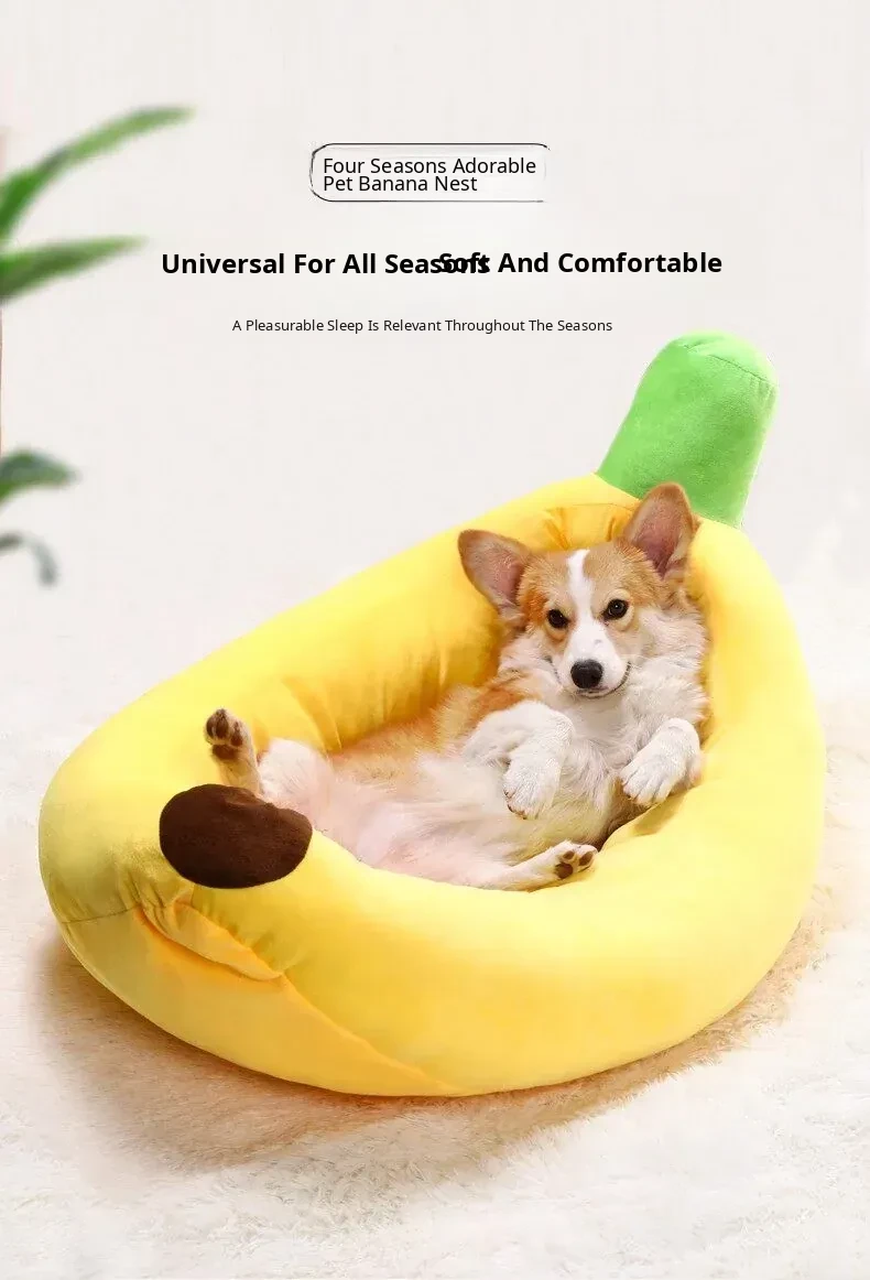 All-Season Dog Bed & Cat House - Removable Washable Pet Mat for Small to Medium Dogs - Banana Boat Design for Spring & Summer Comfort