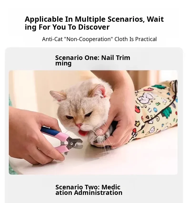 Cat Grooming Restraint Bag - Nail Clipping & Bathing Essential, Anti-Scratch and Anti-Bite Design, Perfect for Securely Holding Your Cat, Durable Fabric with Multiple Uses