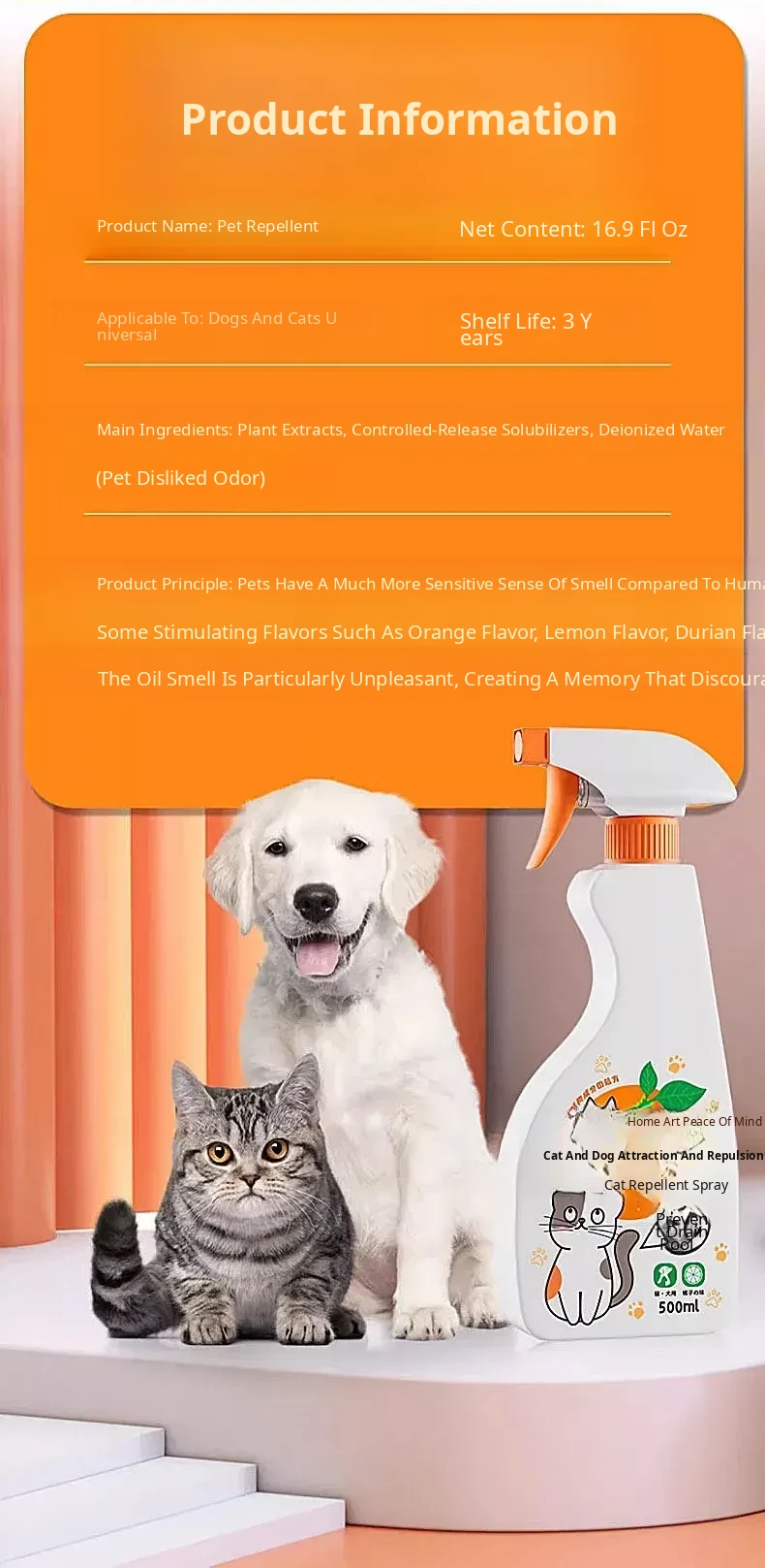 Citrus-Scented Cat Repellent Spray - Effective Solution to Prevent Cats from Urinating on Your Bed and Scratching Furniture - Keep Your Space Cat-Free with This Powerful Deterrent!