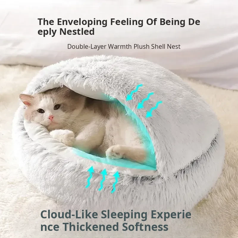 【Gentleman's Gray - Upgraded Thick Version】Shell Warm Nest, recoinended for cats under 20 pounds.