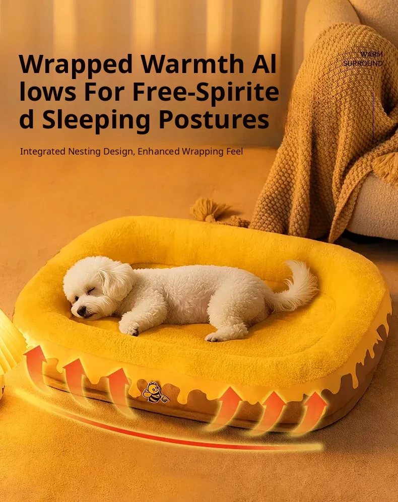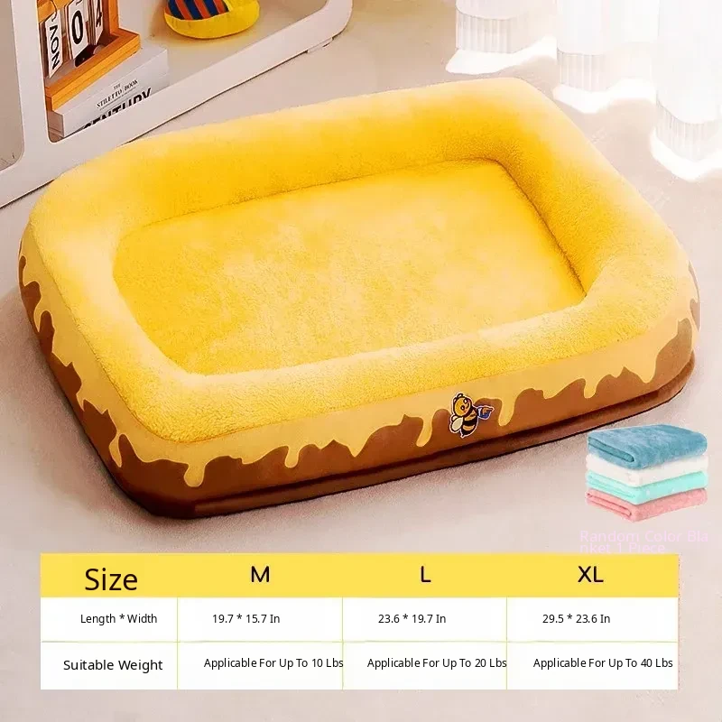 【The Ultimate Cooling & Cozy Combo】Yellow Honeycomb Runway Bed + Warm Blanket