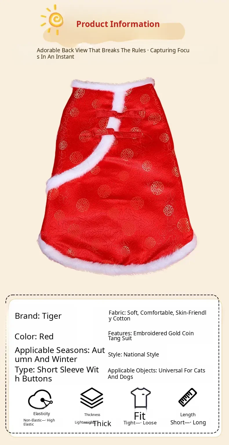 Festive Winter Dog Outfit - Thickened and Warm Chinese New Year Costume for Dogs and Cats - Perfect for Celebrating the New Year with Your Furry Friend!