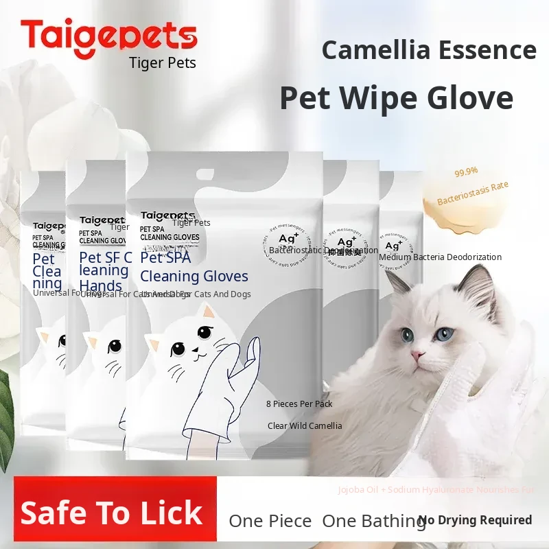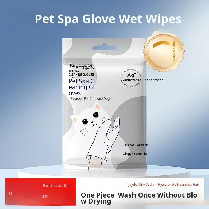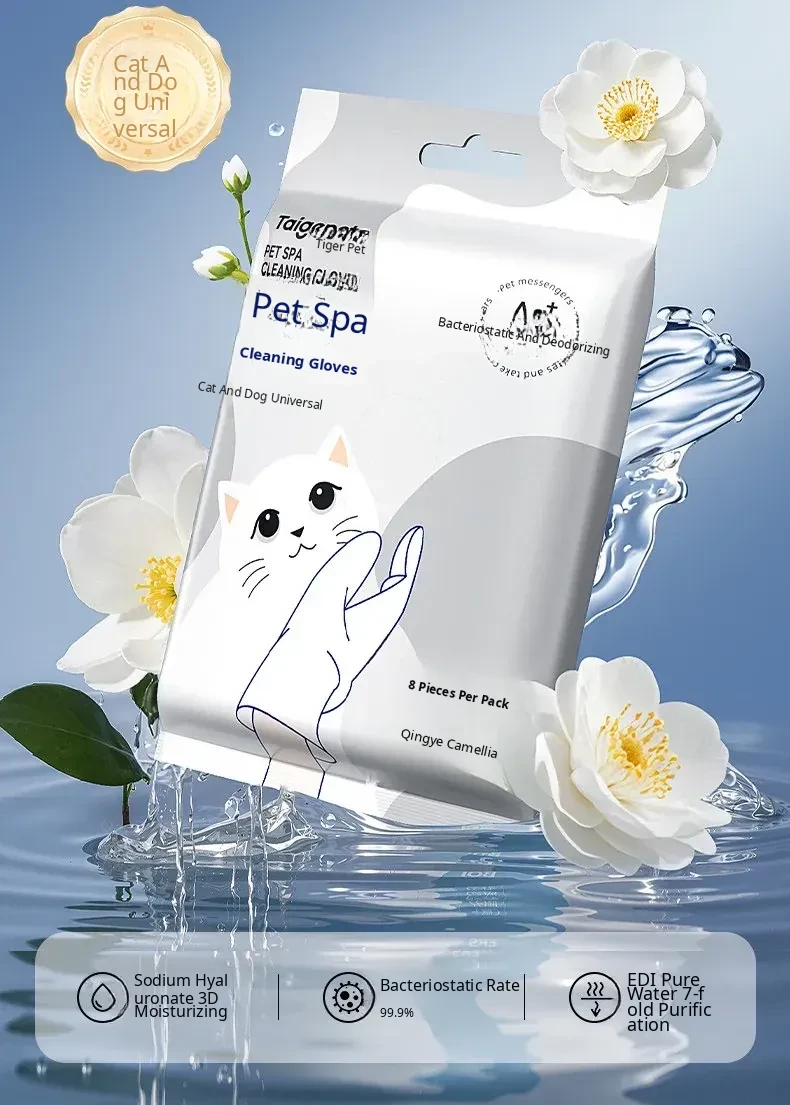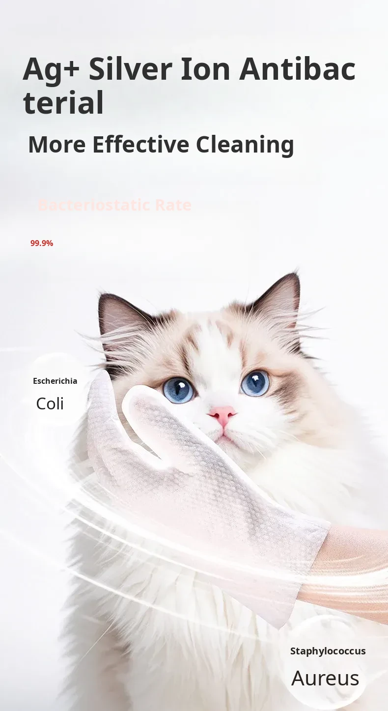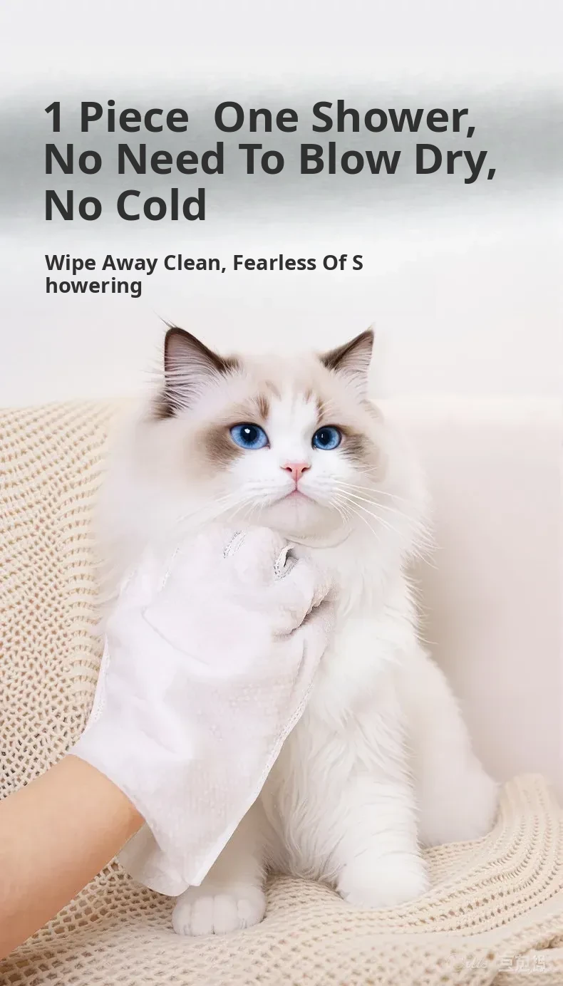Pet Cat Cleaning Wipes - No-Rinse Gloves for Cats & Dogs, Odor-Eliminating Dry Bath Wipes for Easy Pet Hygiene and Grooming