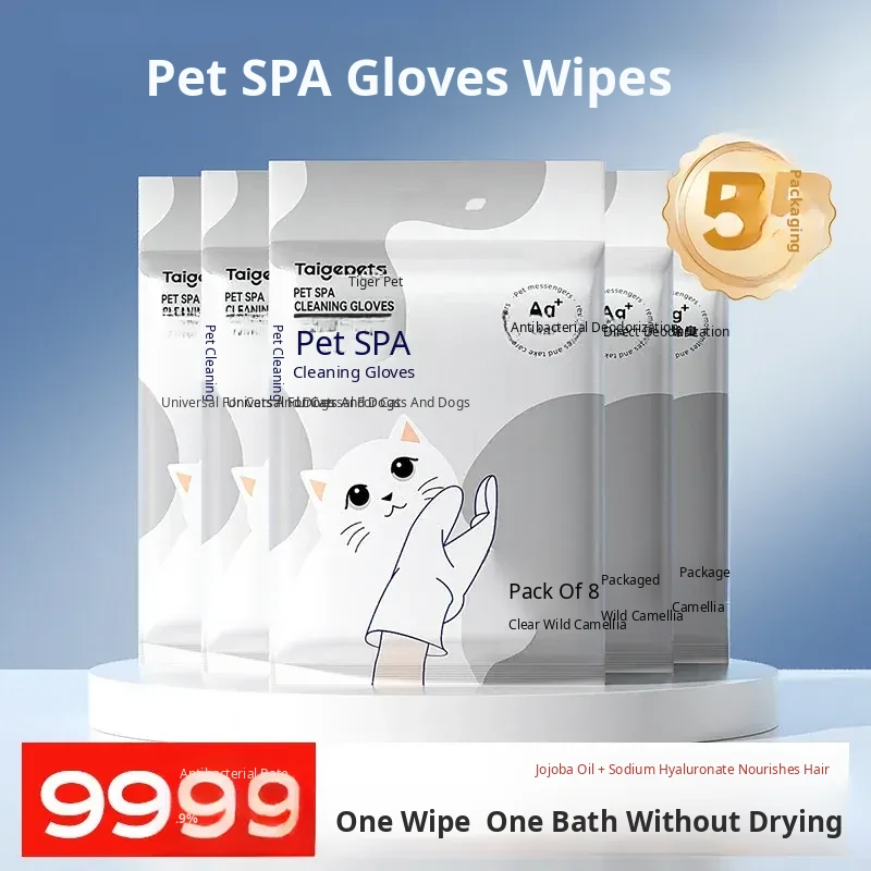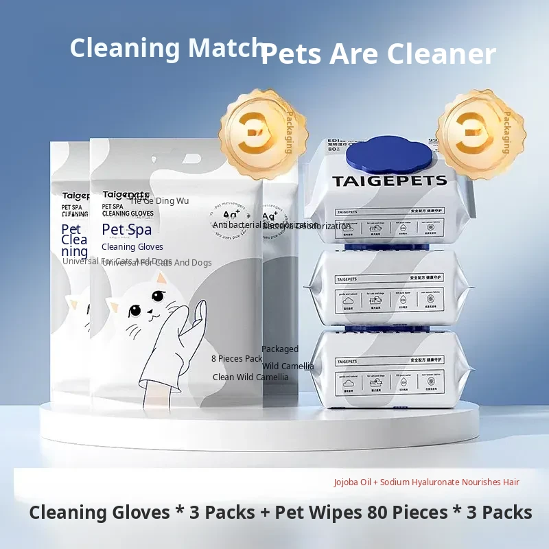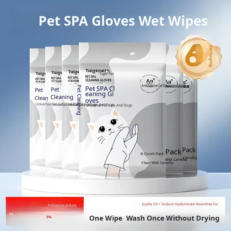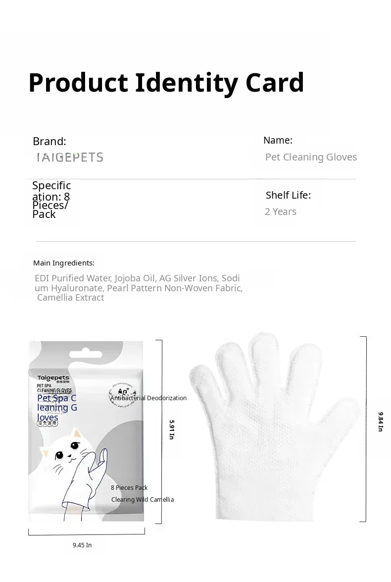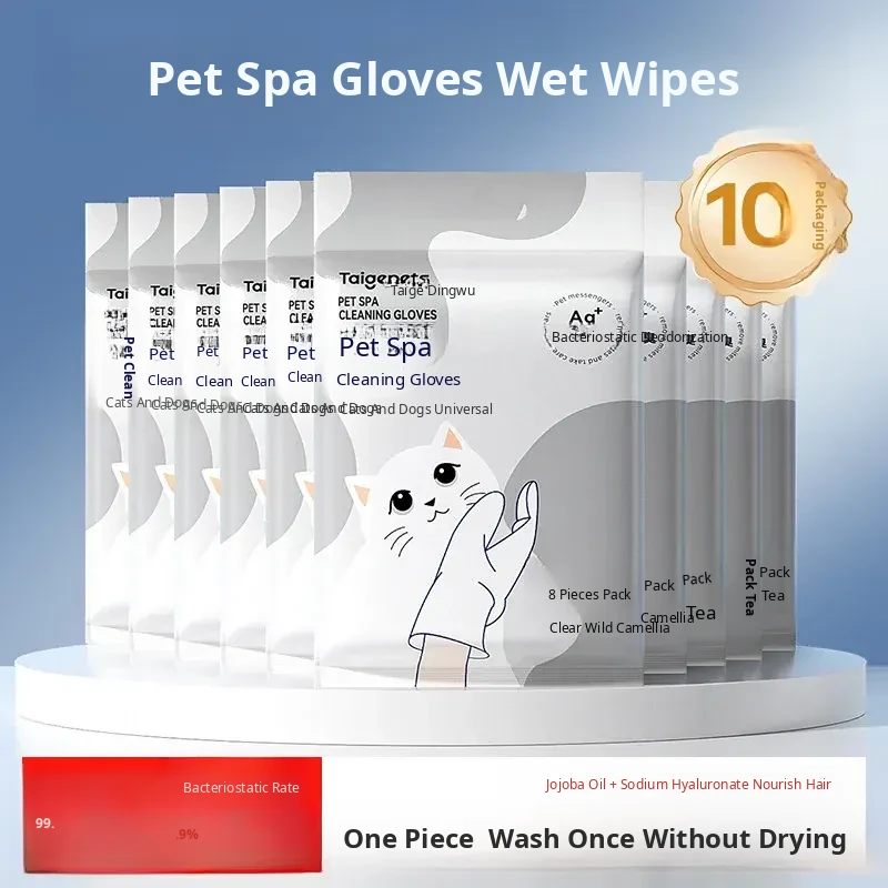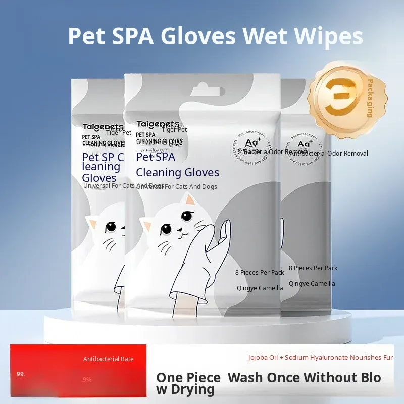 Pet Cat Cleaning Wipes - No-Rinse Gloves for Cats & Dogs, Odor-Eliminating Dry Bath Wipes for Easy Pet Hygiene and Grooming