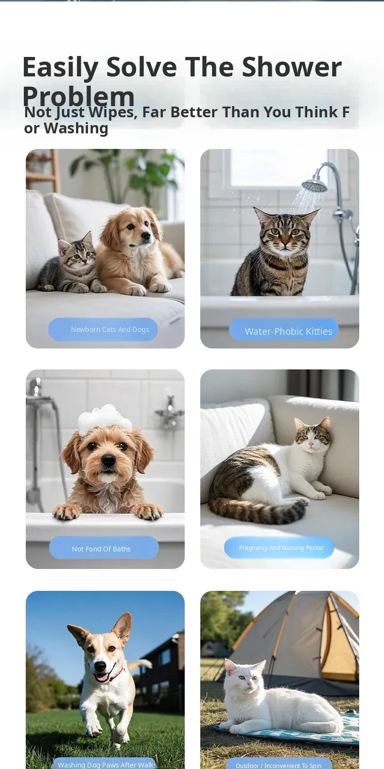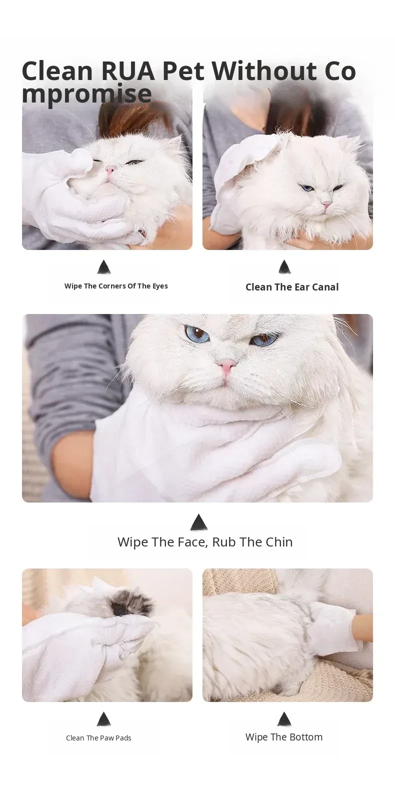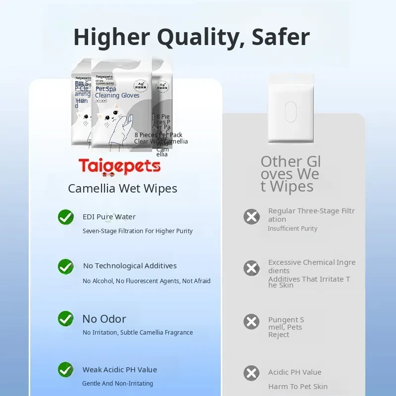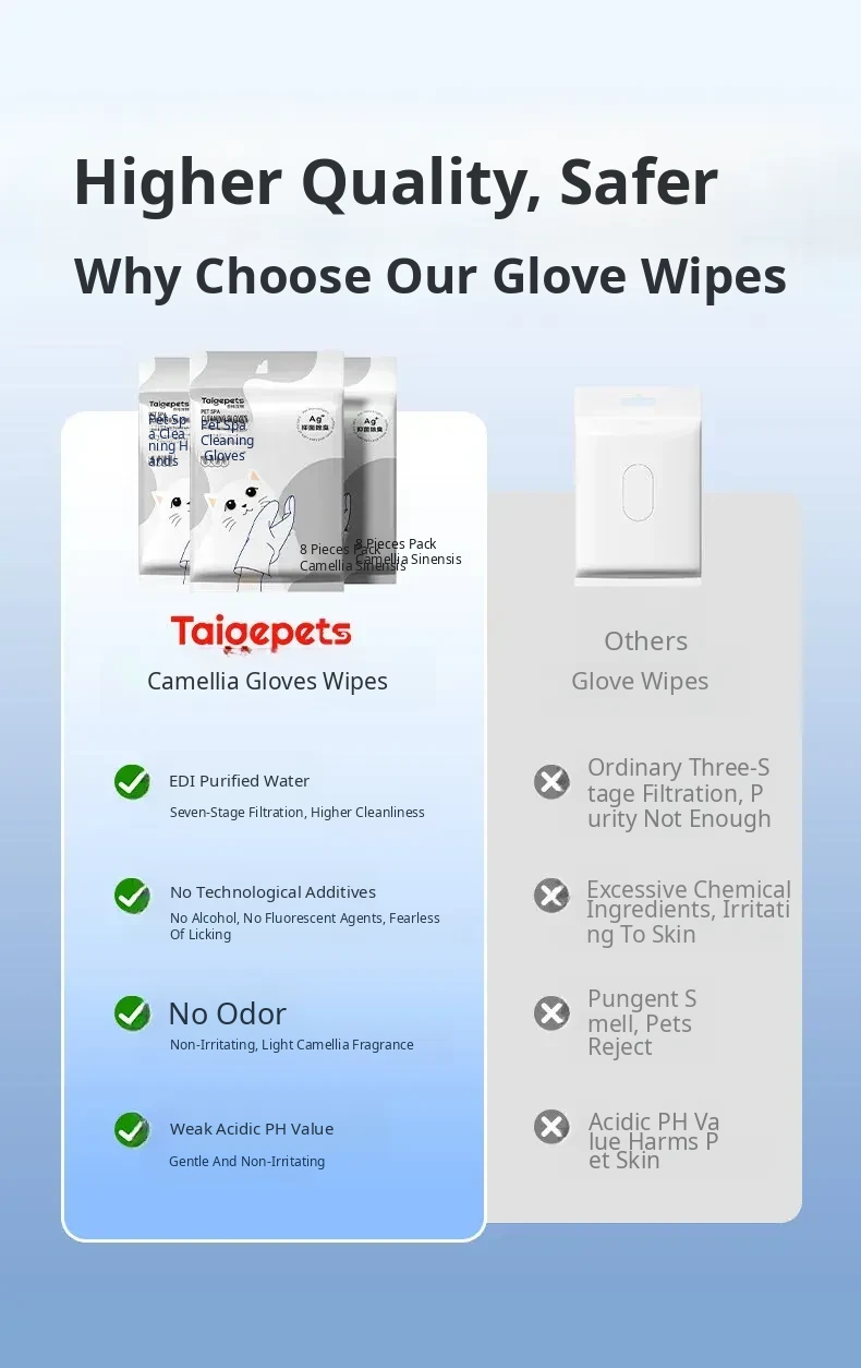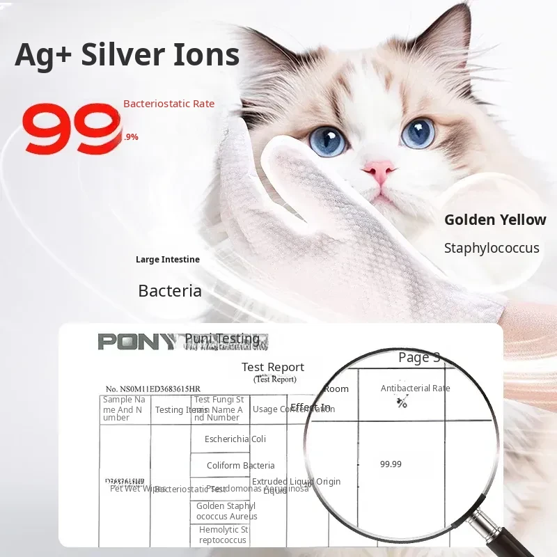 Pet Cat Cleaning Wipes - No-Rinse Gloves for Cats & Dogs, Odor-Eliminating Dry Bath Wipes for Easy Pet Hygiene and Grooming