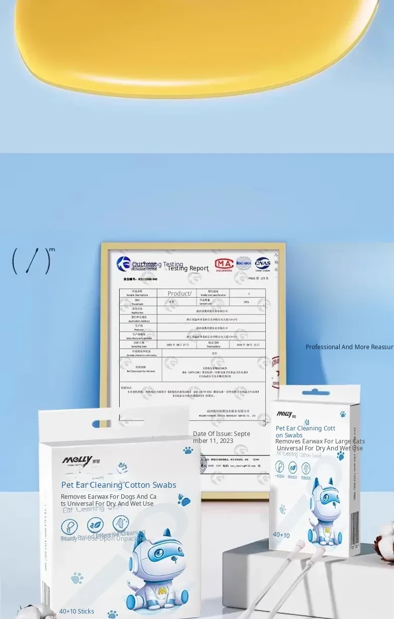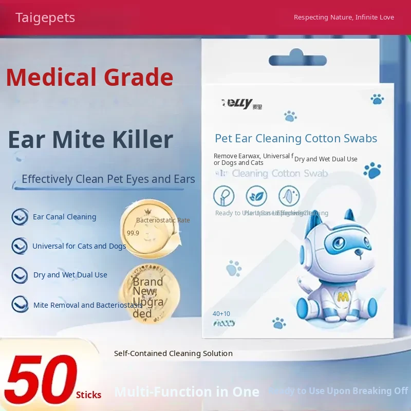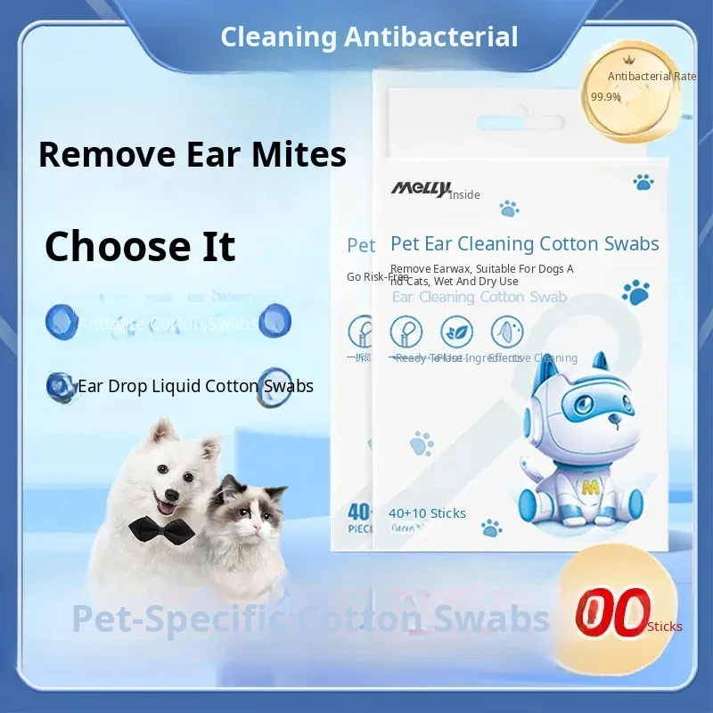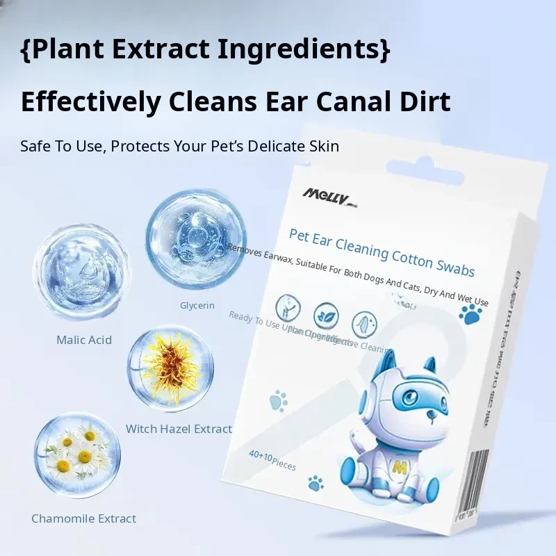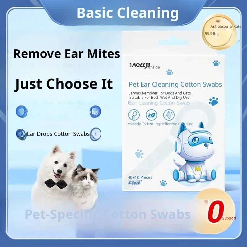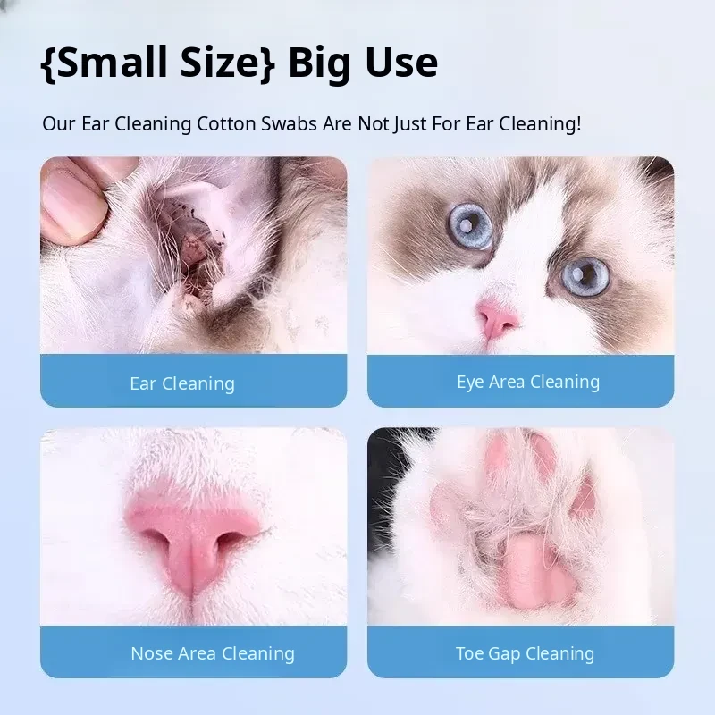 [Universal for Cats and Dogs] 50 Ear Cleaning Cotton Swabs [Comes with Care Solution]