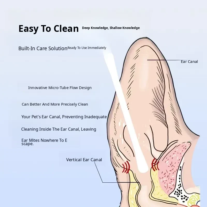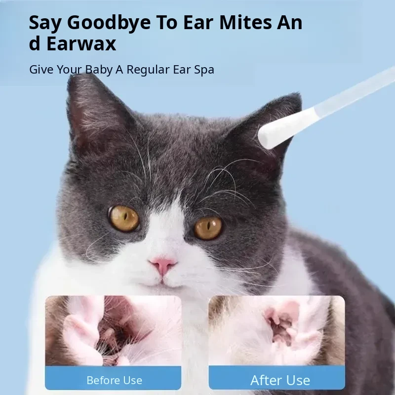 Pet Ear Cleaning Solution with Cotton Swabs for Cats and Dogs - Effective Ear Mite Treatment, Relieves Itching, and Provides Antibacterial Care for Healthy Ears