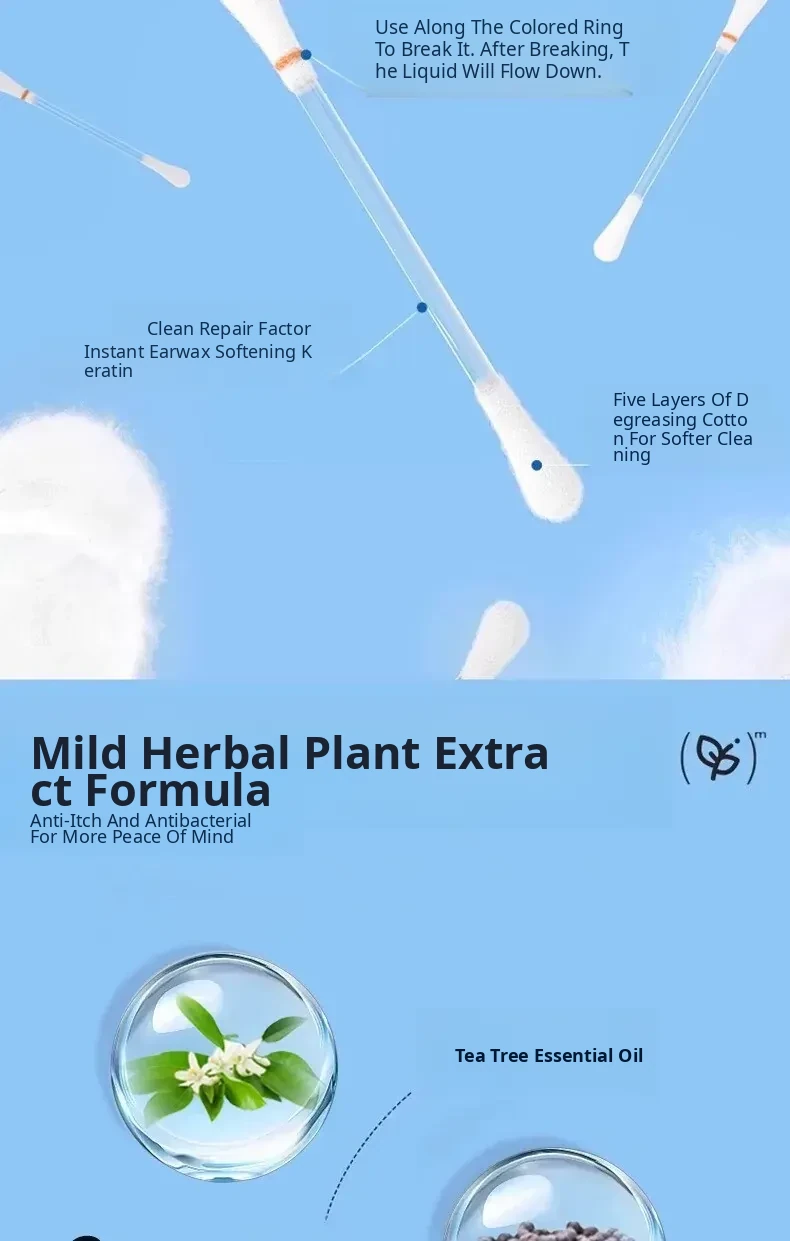 [Value Set] 100 Ear Cleaning Cotton Swabs [Comes with Care Solution]
