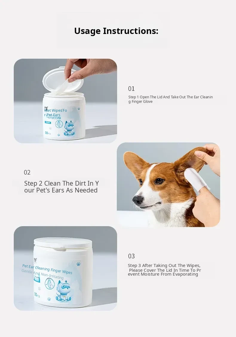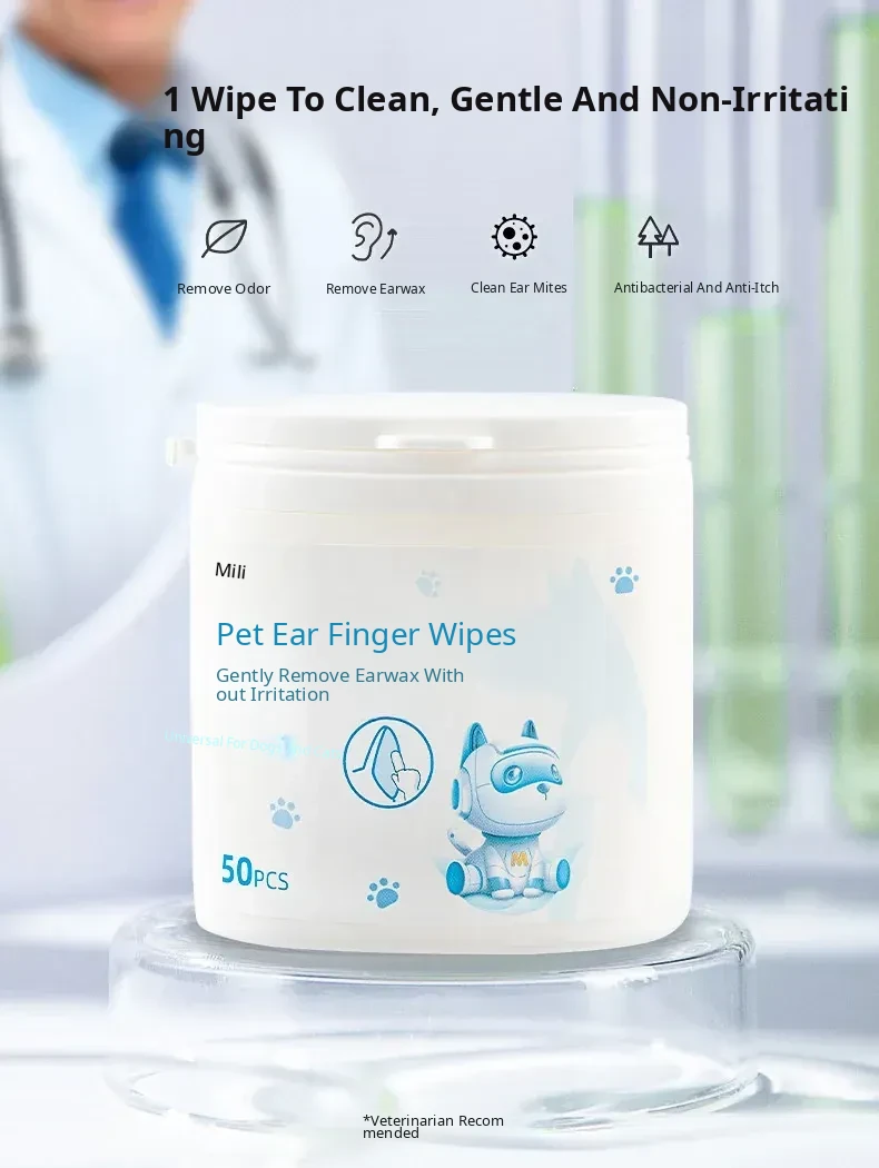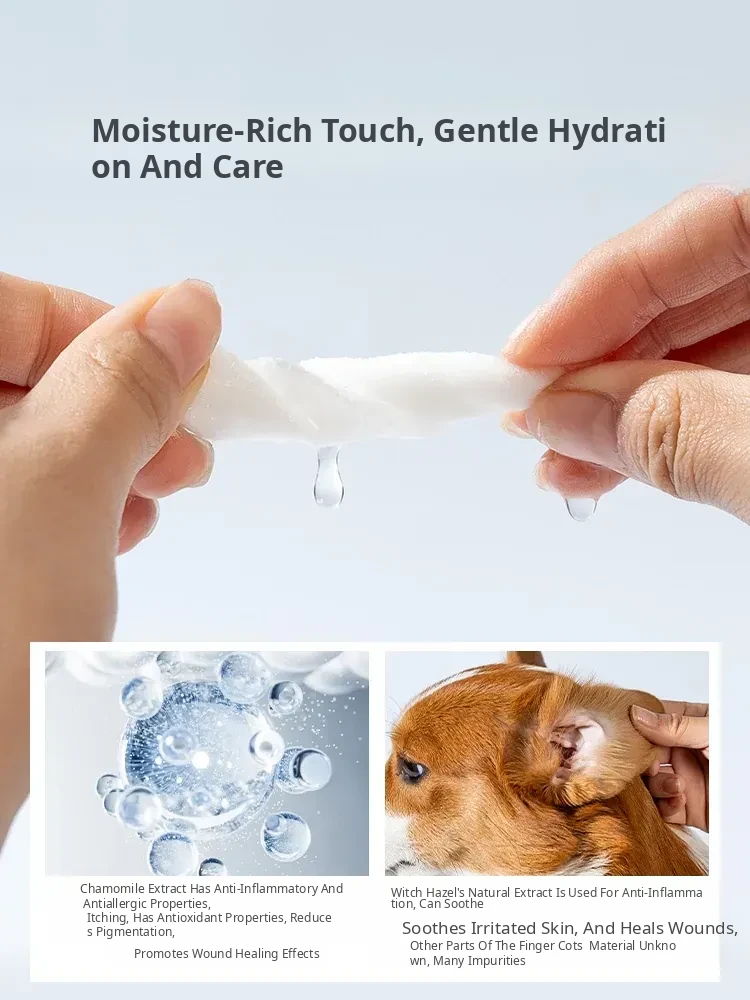 Pet Ear Cleaning Wipes – Gentle Ear Cleaner for Dogs and Cats, Effectively Removes Ear Mites and Relieves Itching, Antibacterial Formula for Healthy Ears