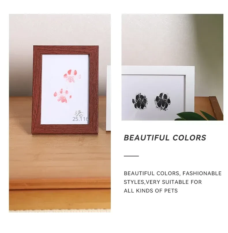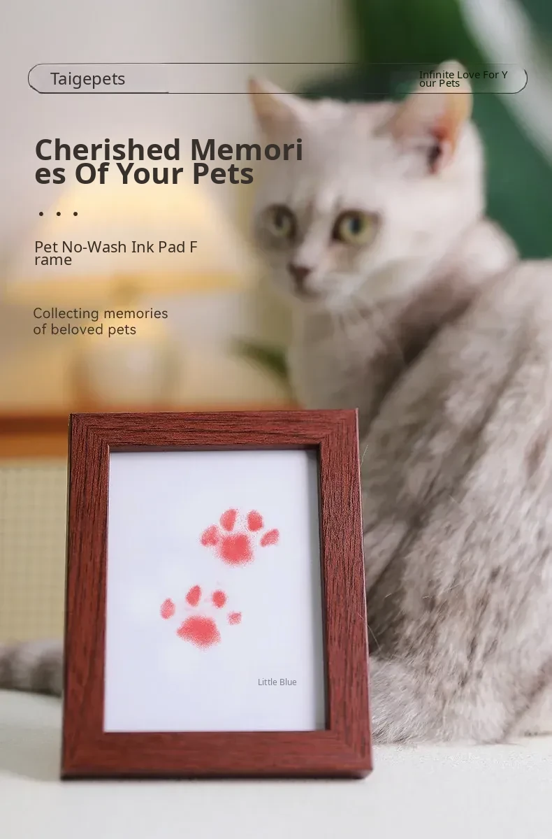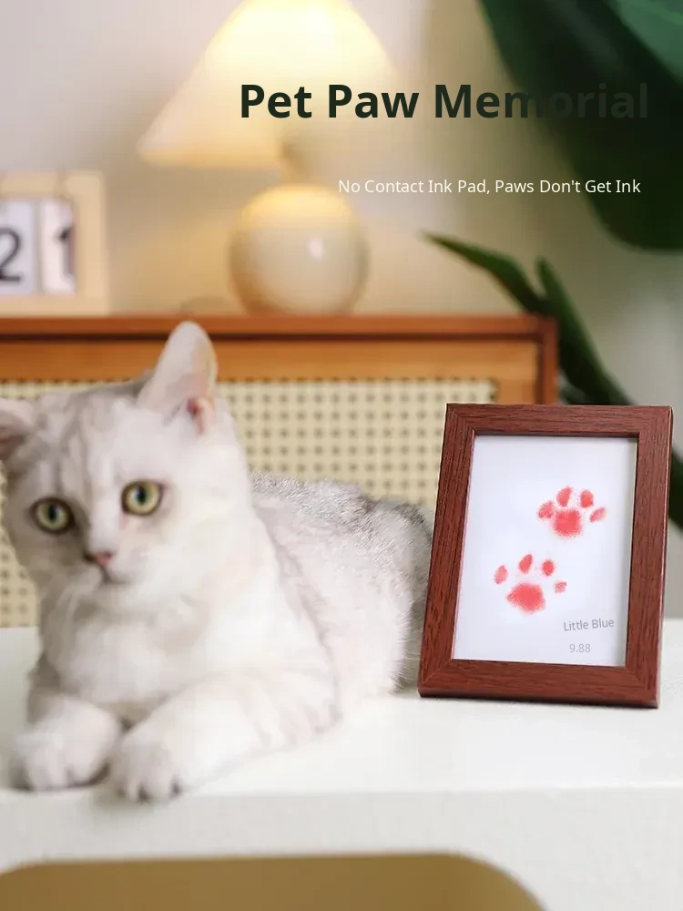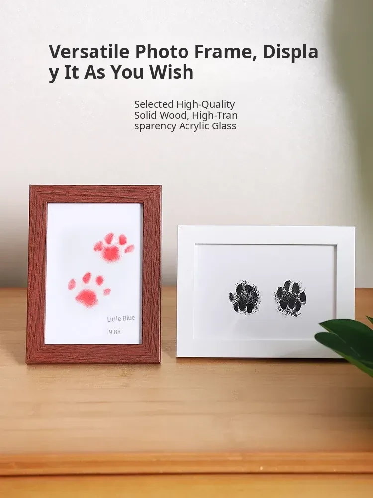 Pet Paw Print Keepsake Kit - No-Mess Ink Pad for Cats and Dogs, Memorial Photo Frame with Easy Print Stamp