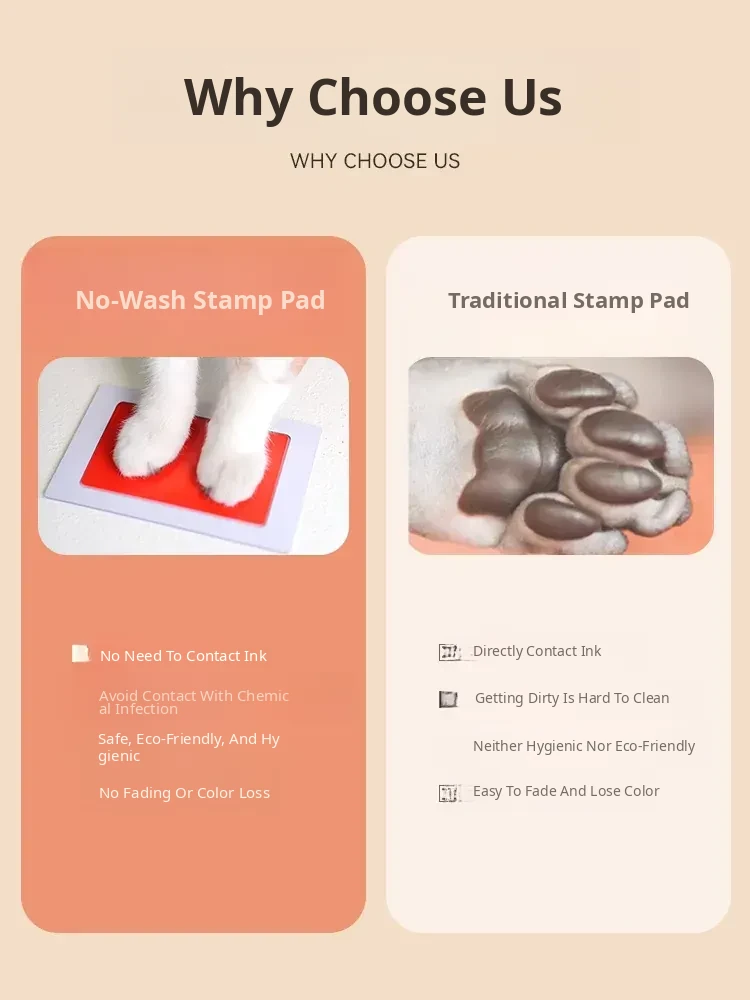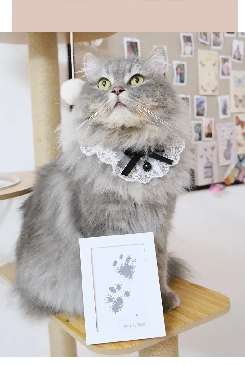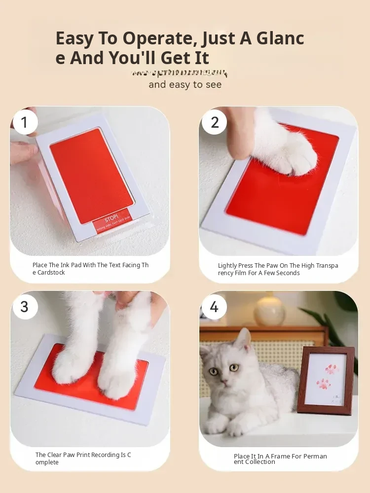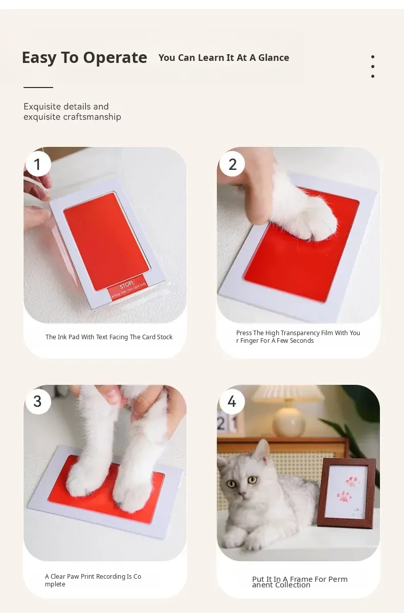 Pet Paw Print Keepsake Kit - No-Mess Ink Pad for Cats and Dogs, Memorial Photo Frame with Easy Print Stamp