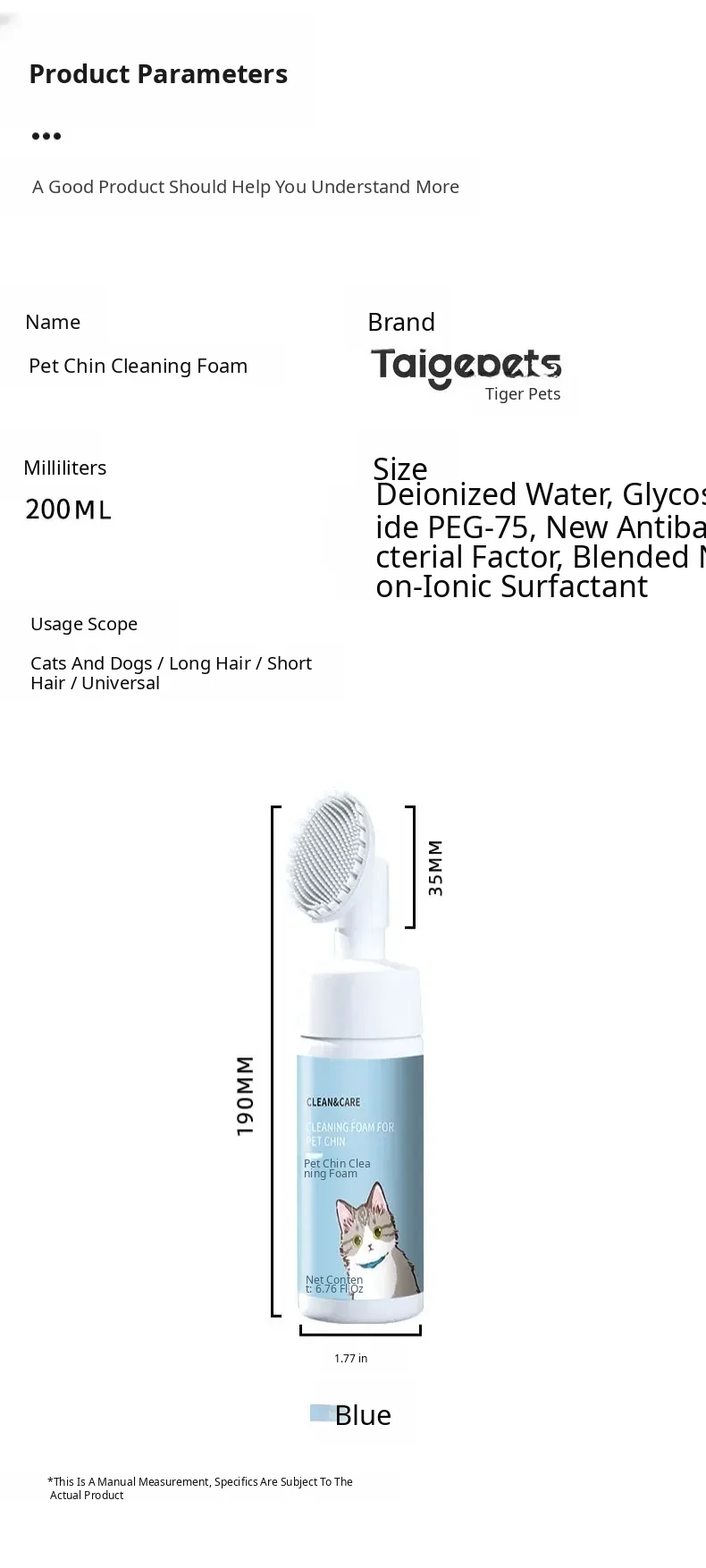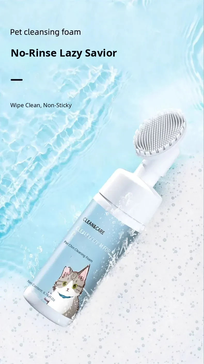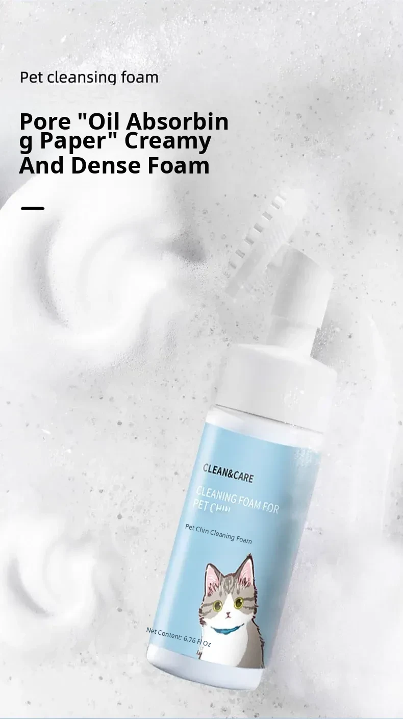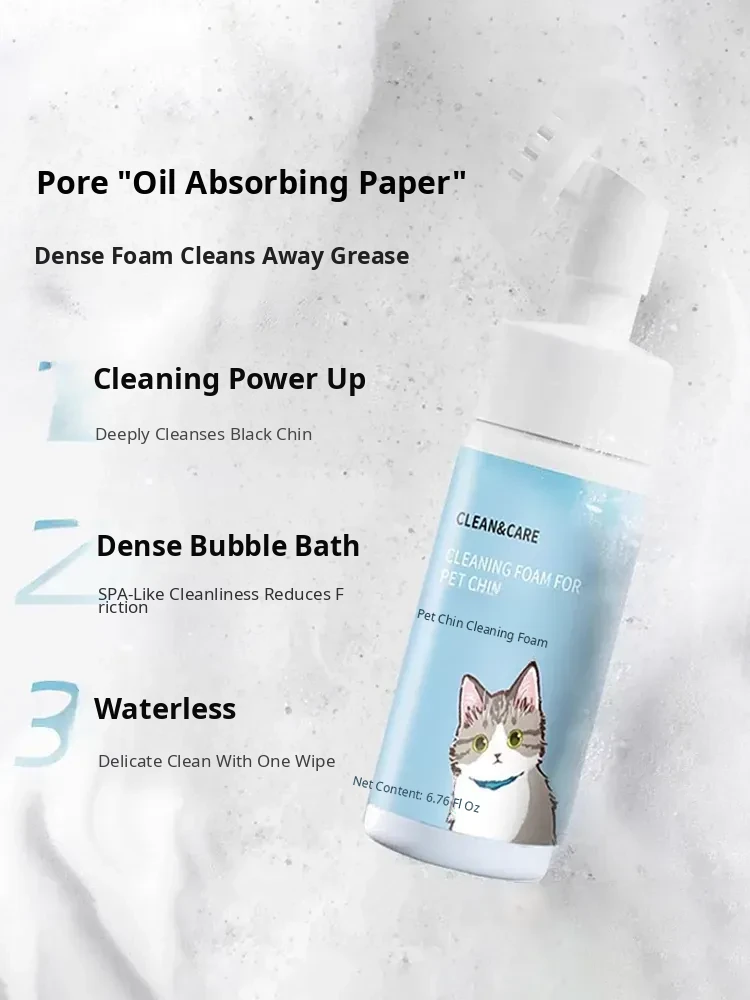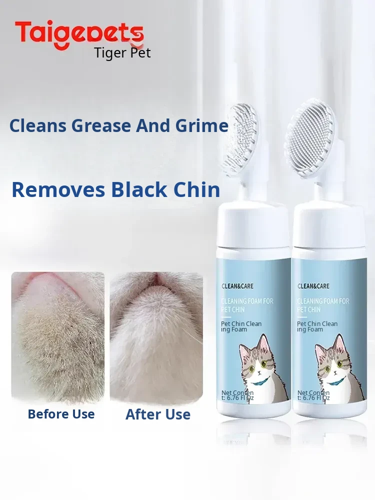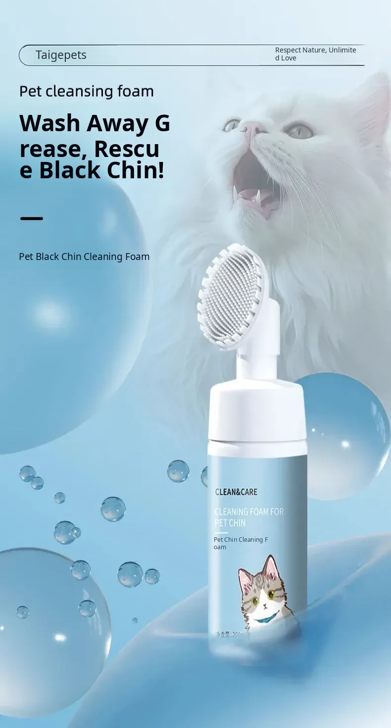 Taige Cat Black Chin Cleaning Foam Brush - Oil-Removing Pet Shampoo, No-Rinse Deodorizing Bath Solution for Cats