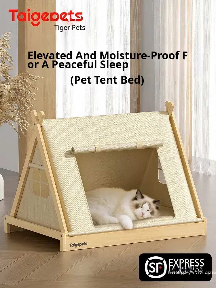 Cozy Solid Wood Cat Tent - Versatile 4-Season Cat Bed & Pet Sofa, Summer Half-Enclosed Design for Ultimate Safety and Comfort for Your Feline Friend