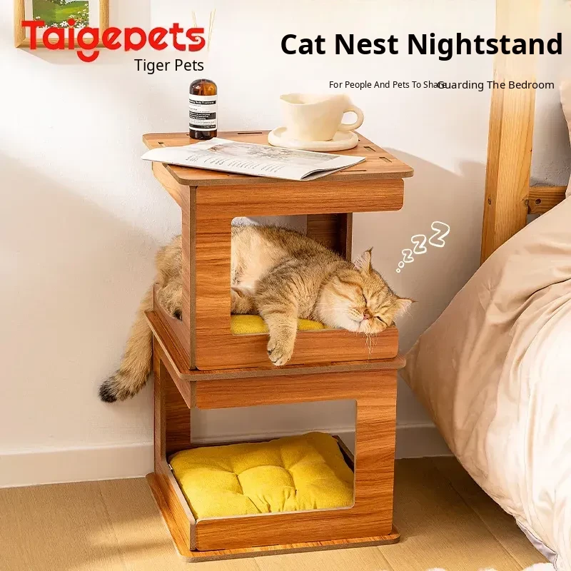 "Dual-Layer Cat Bed & Nightstand - Innovative Seasonal Cat House for Pets and Owners, Perfect for Cozy Sleep by Your Side!"