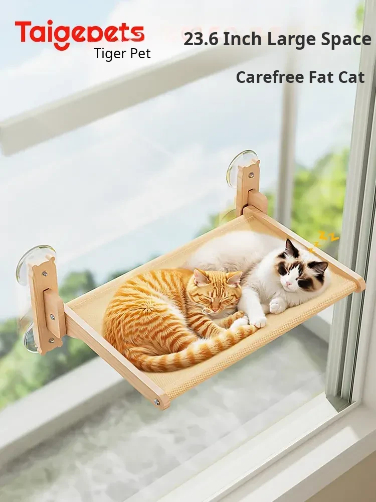 Window Suction Cat Hammock - Foldable Wooden Cat Bed for All Seasons, Perfect Sunbathing Solution for Cats