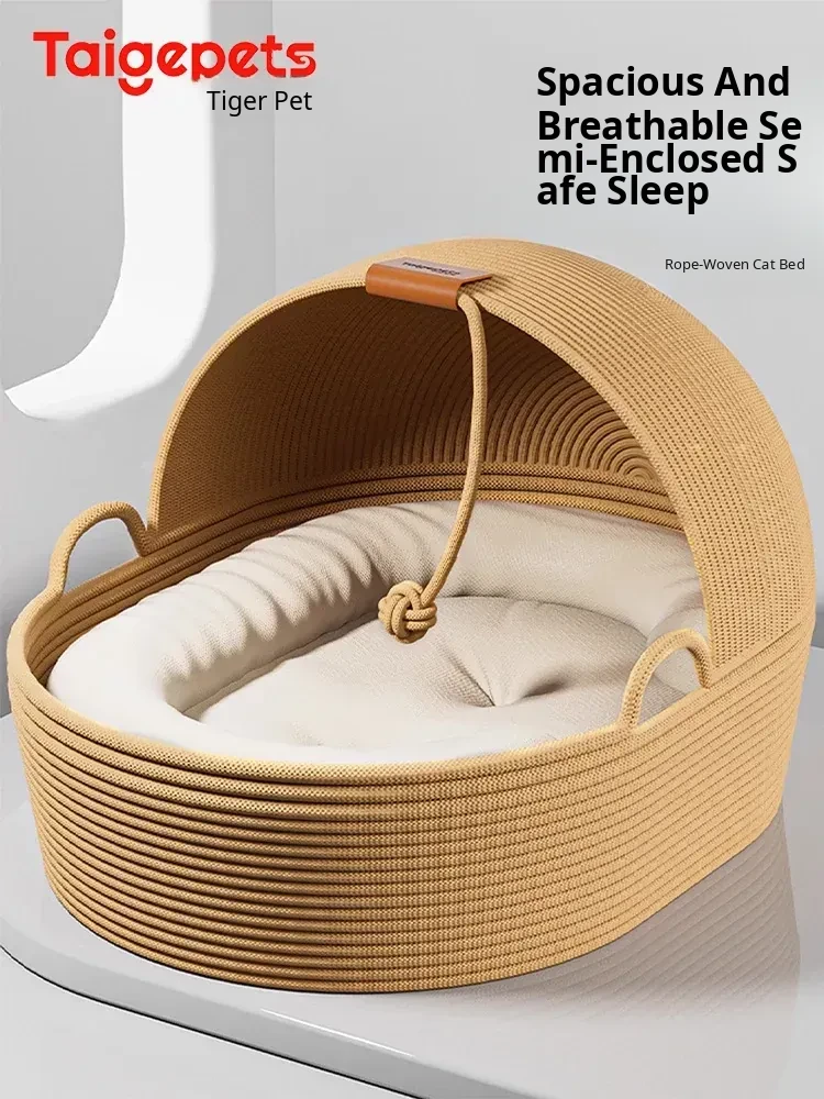 Cozy Solid Wood Cat Tent - Versatile 4-Season Cat Bed & Pet Sofa, Summer Half-Enclosed Design for Ultimate Safety and Comfort for Your Feline Friend