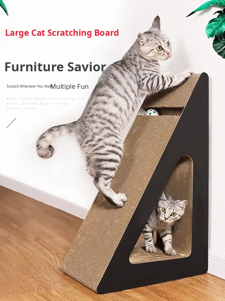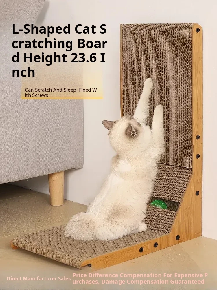 Durable L-Shaped Cat Scratching Post - Large, Non-Shedding, 3D Corrugated Cardboard Cat Scratch Board for Playtime and Claw Care - Perfect Cat Toy and Essential for Happy Cats!