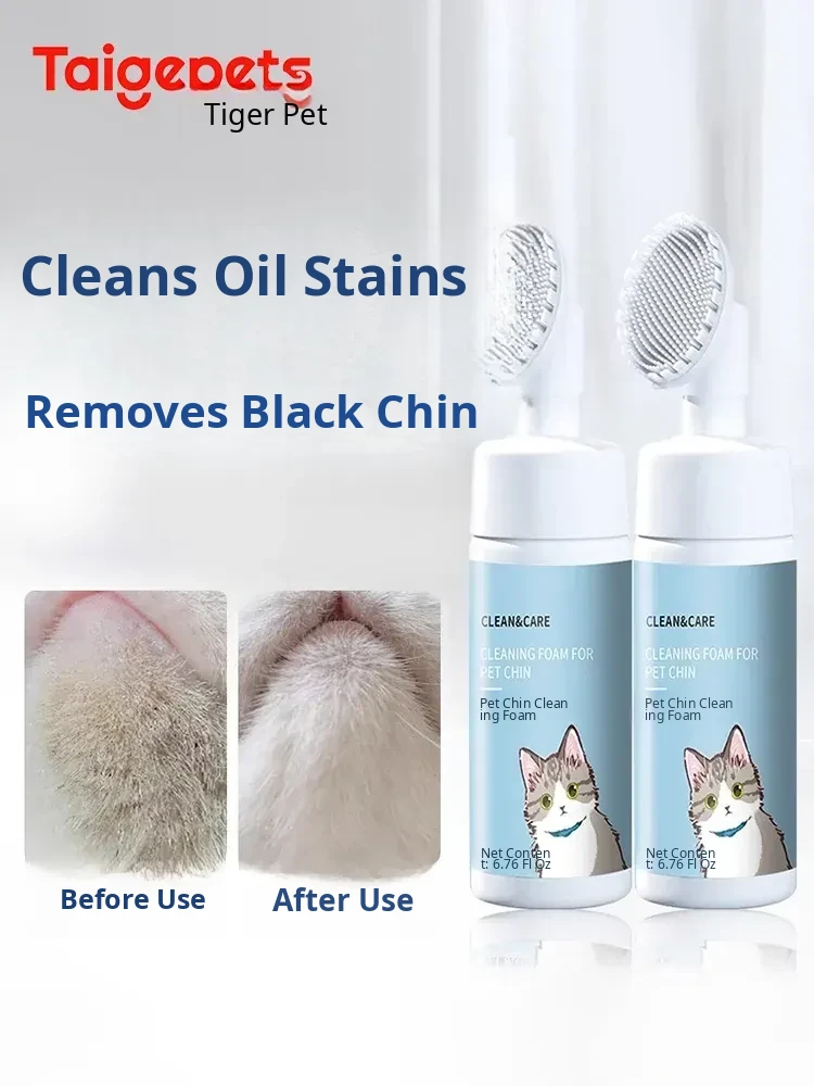 Taige Cat Black Chin Cleaning Foam Brush - Oil-Removing Pet Shampoo, No-Rinse Deodorizing Bath Solution for Cats