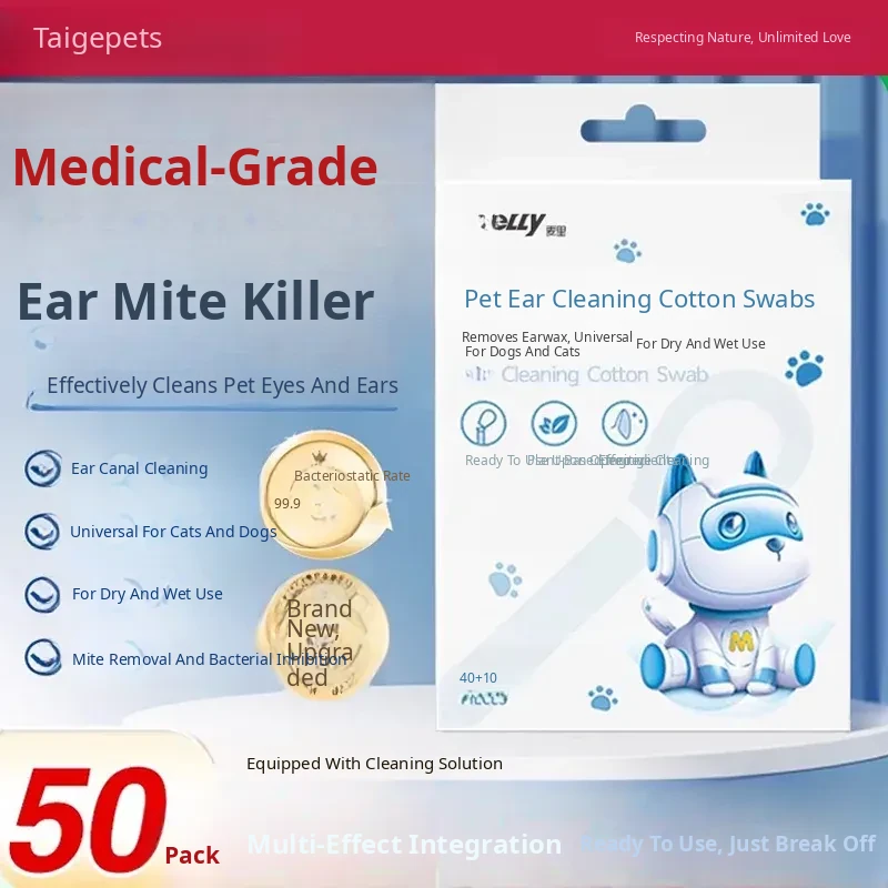 Pet Ear Cleaning Solution with Cotton Swabs for Cats and Dogs - Effective Ear Mite Treatment, Relieves Itching, and Provides Antibacterial Care for Healthy Ears