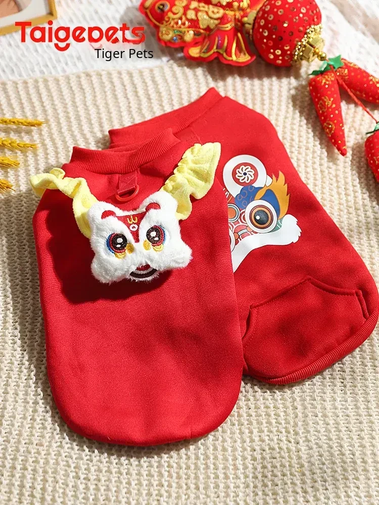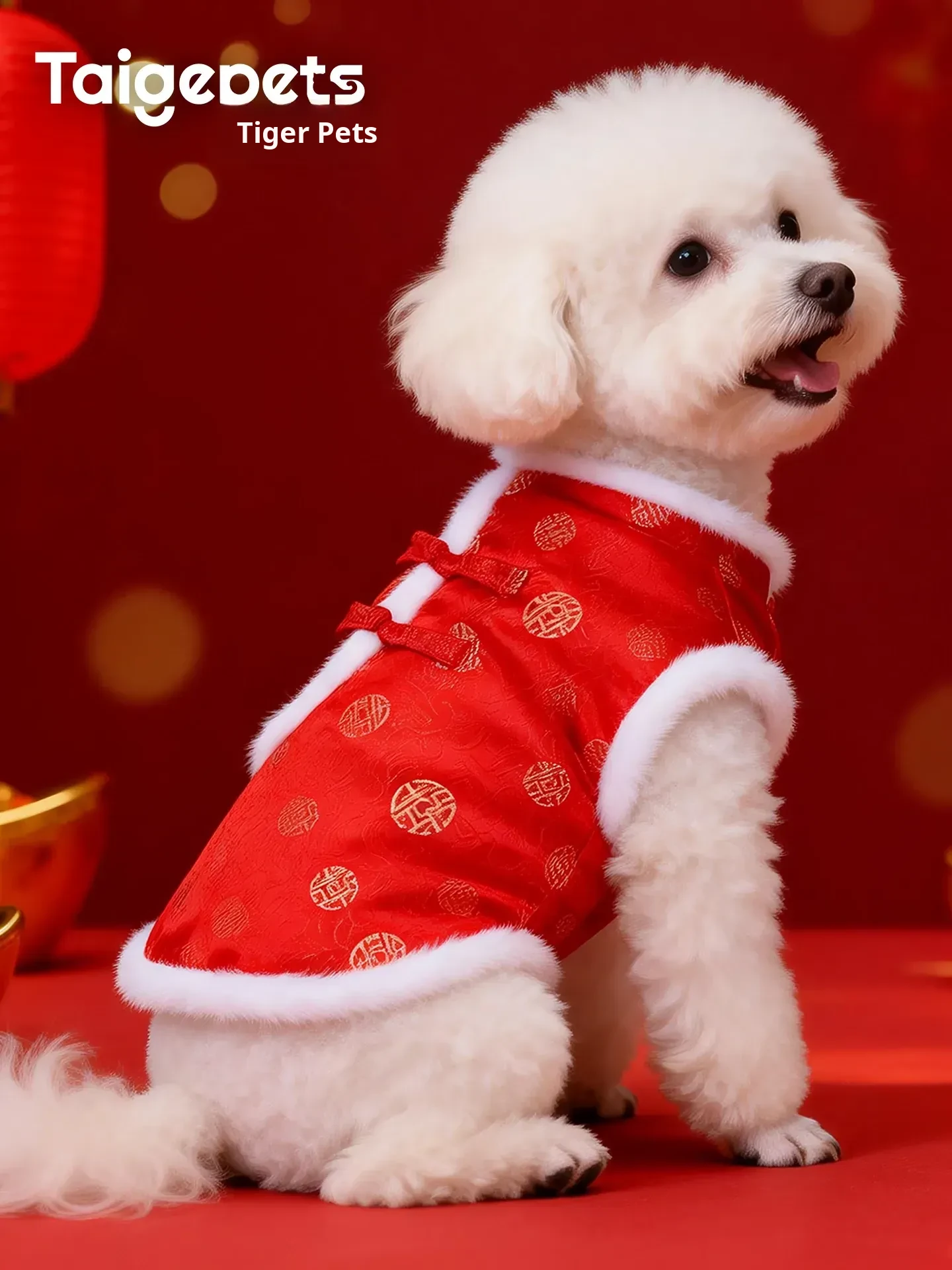Festive Winter Dog Outfit - Thickened and Warm Chinese New Year Costume for Dogs and Cats - Perfect for Celebrating the New Year with Your Furry Friend!