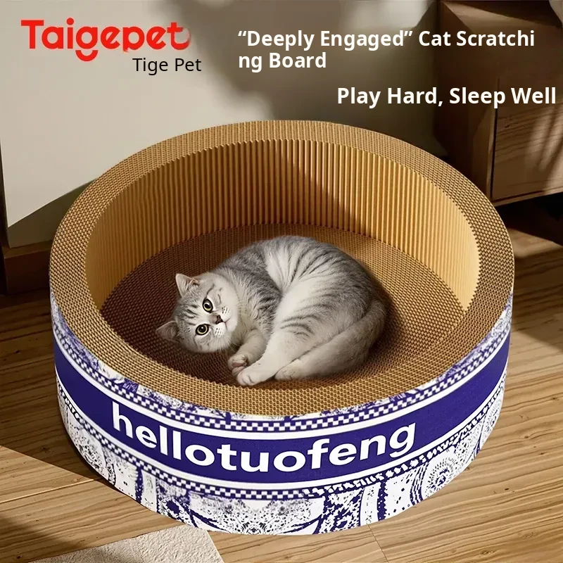 "Extra Large Cat Scratching Pad - Durable, Scratch-Resistant, and Mess-Free. Perfect for Play and Sleep, This All-Season Scratching Bowl is a Must-Have for Your Feline Friend!"