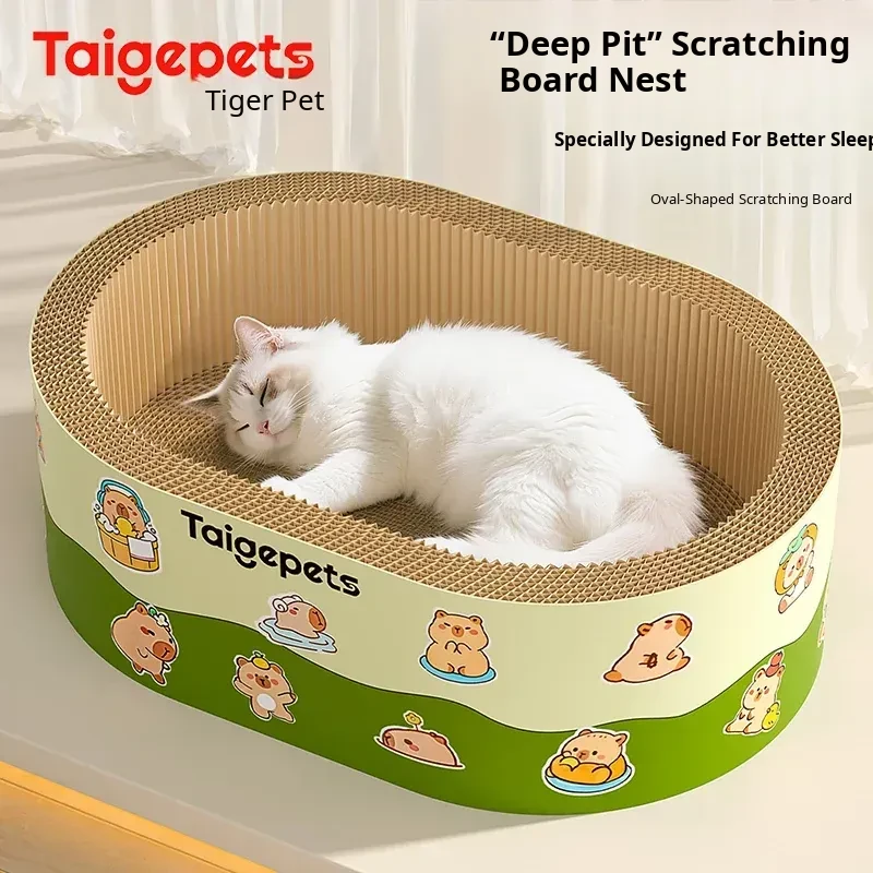 Durable Cat Scratching Pad and Bed Combo - Eco-Friendly Corrugated Cardboard Cat Lounge for All Seasons, Perfect for Scratching and Relaxing!