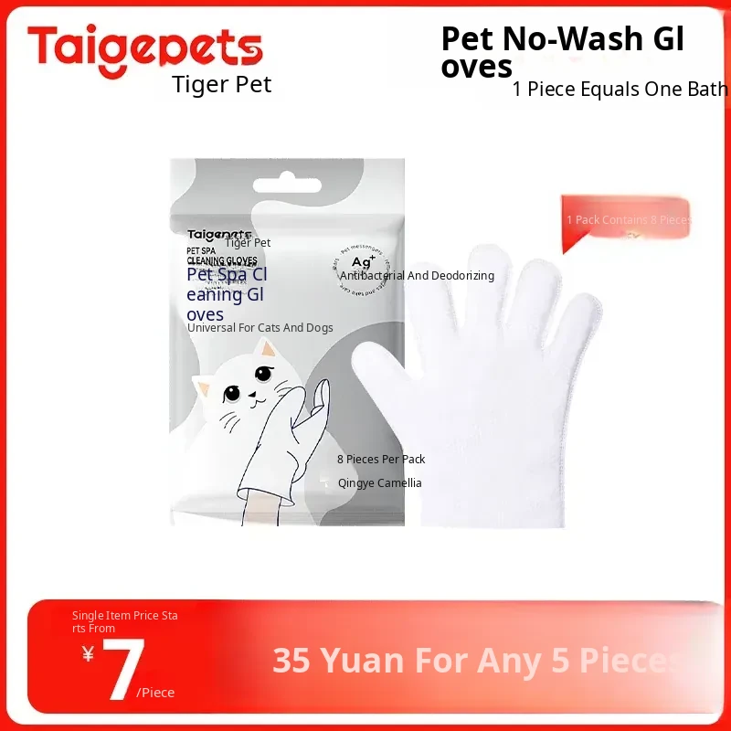 "【5 for 35 Yuan】Pet Dry Cleaning Gloves & Cat Wet Wipes - Perfect for Cat & Dog Hygiene and Quick Clean-ups!"