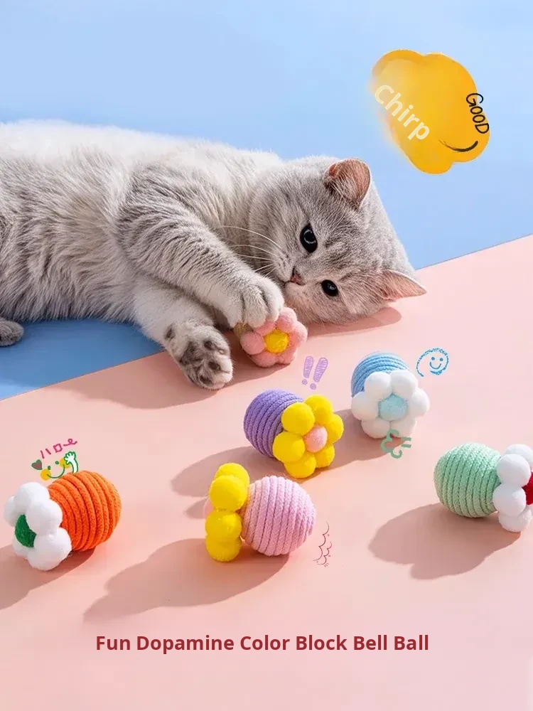 Interactive Cat Toy Ball - Self-Entertainment and Fun for Kittens, Energy-Consuming Cotton Rope Chew Toy, Essential Cat Supplies for Playtime and Dental Health.