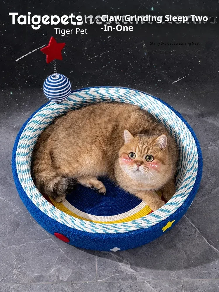 Durable Cat Scratching Pad and Bed Combo - No Shedding, Perfect for Cats to Sharpen Their Claws. Made with High-Quality Sisal Rope, This Cat Scratching Post and Cozy Nest is Perfect for Your Feline Friend's Comfort and Play!