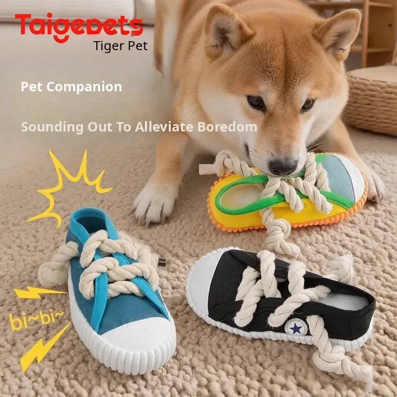 Interactive Dog Chew Slippers - Plush Rope Toy for Puppies, Dental Chew and Tug-of-War Fun, Squeaky Companion for Your Pet