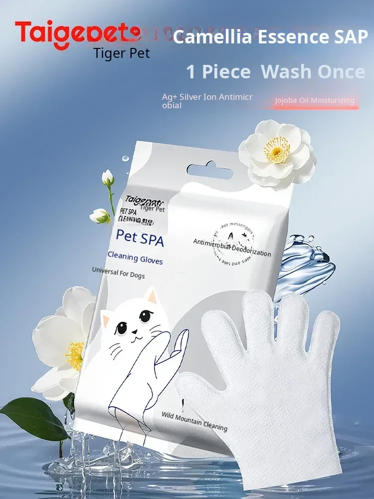 Pet Wet Wipes for Cats and Dogs - Antibacterial, No-Rinse Cleaning Gloves for Paws, Bottoms, Bathing, and Tear Stains - Gentle Care for Your Furry Friends
