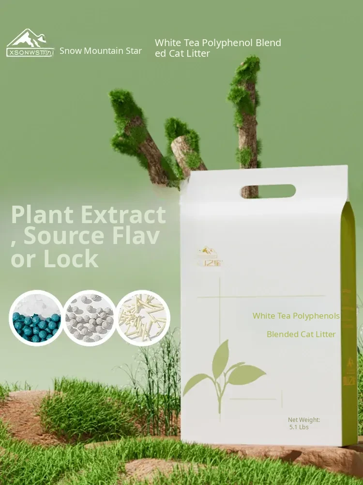 Premium White Tea Polyphenol Cat Litter - Natural Tofu and Bentonite Blend, 20 lbs, Low Dust, Odor Control, Ideal for Kittens - Free Shipping!