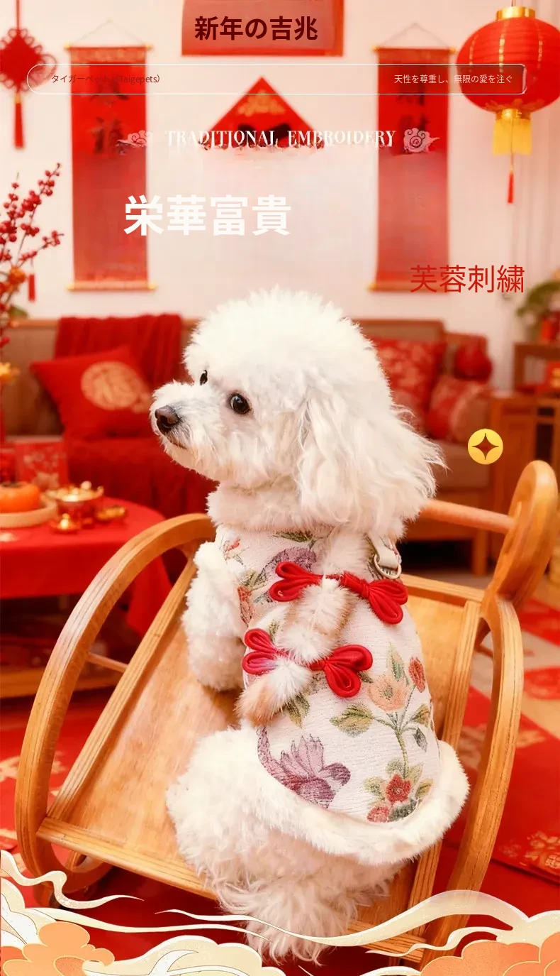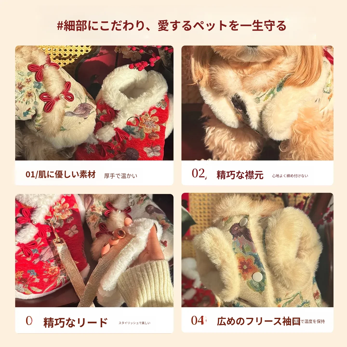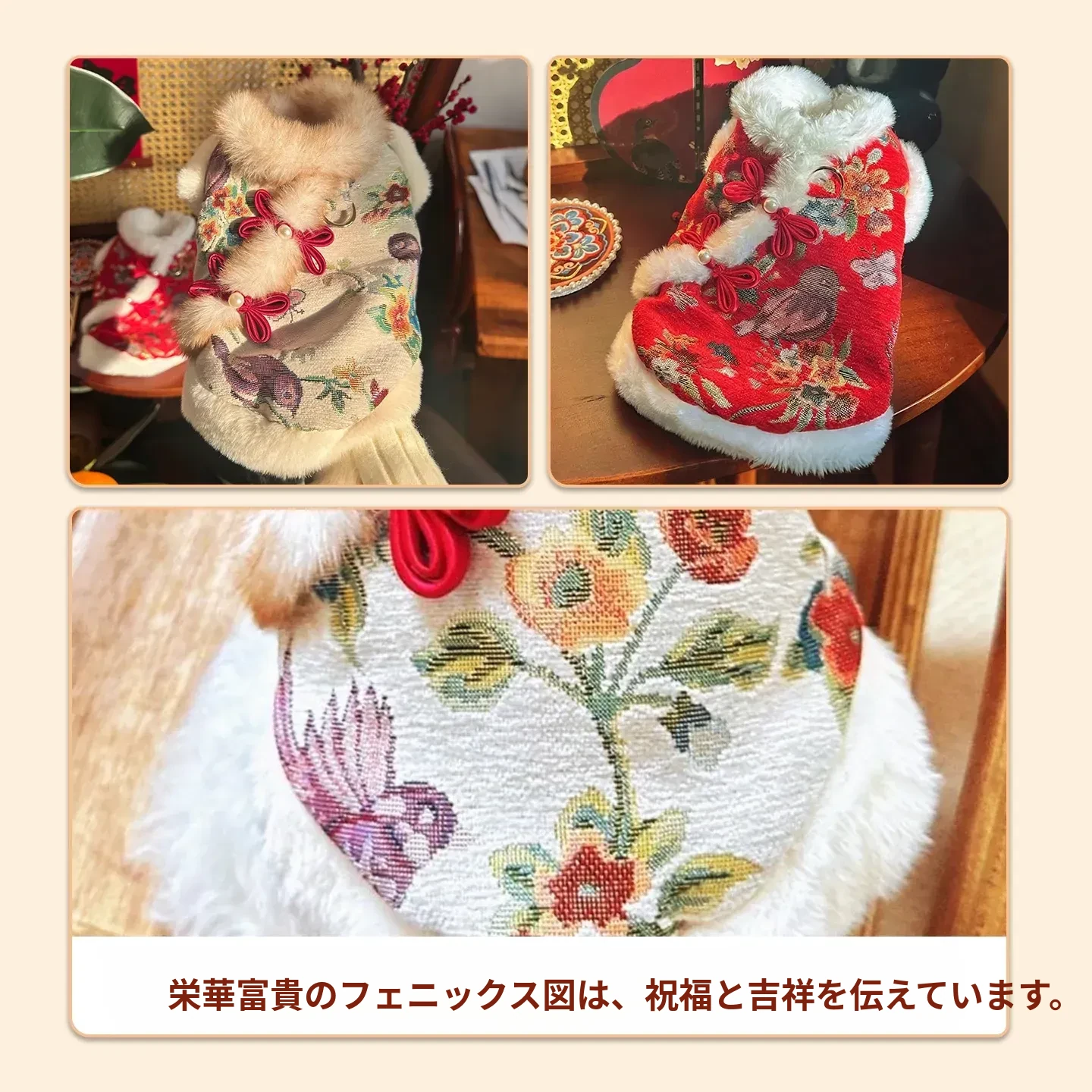 2026年新春猫犬用中華風あったかベスト!可愛いデザインで、寒い冬も快適に過ごせる!中小型犬もぴったり!愛するペットと一緒に素敵な新年を迎えましょう!