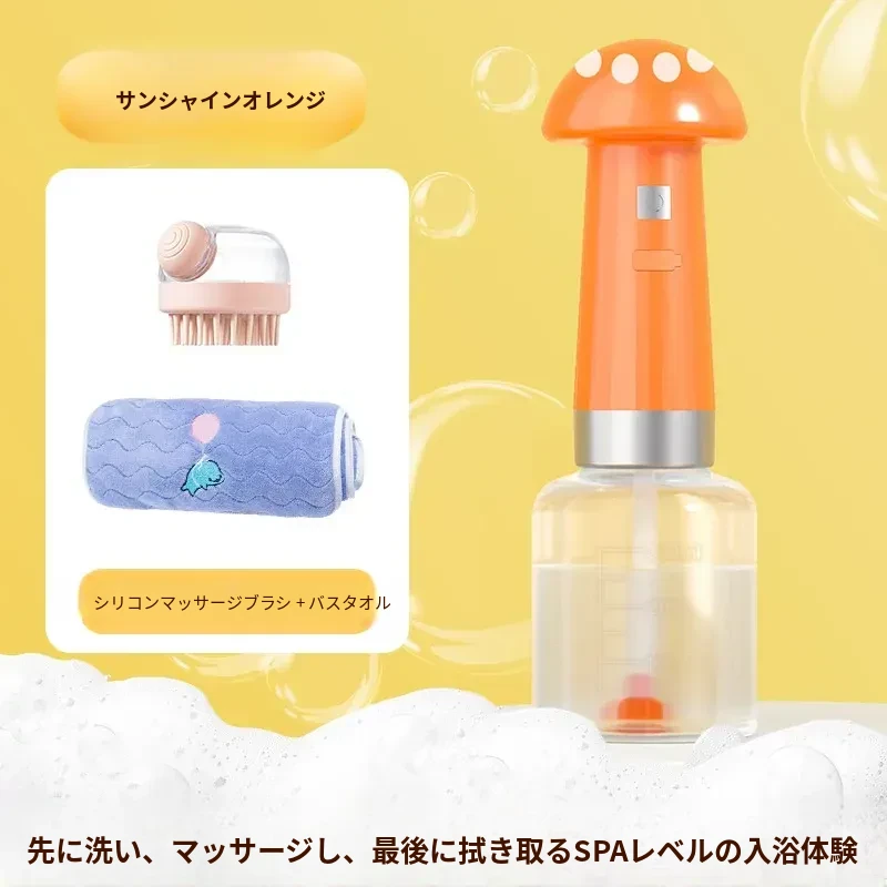 【SPA級バス体験】【サンシャインオレンジ】バブルマシン+吸水バスタオル+シリコンマッサージブラシ