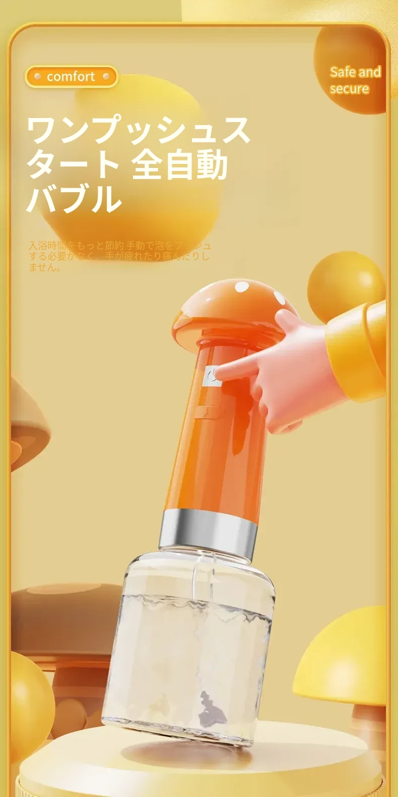 【ワンクリックで泡立つ ふわふわ泡】【サンシャインオレンジ】バブルバスメーカー