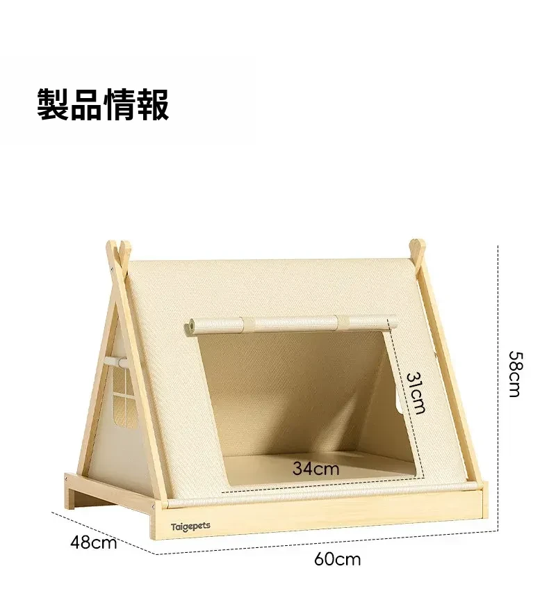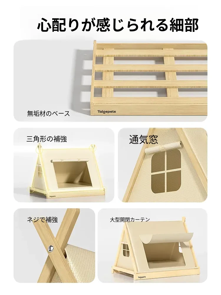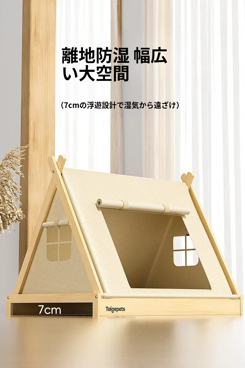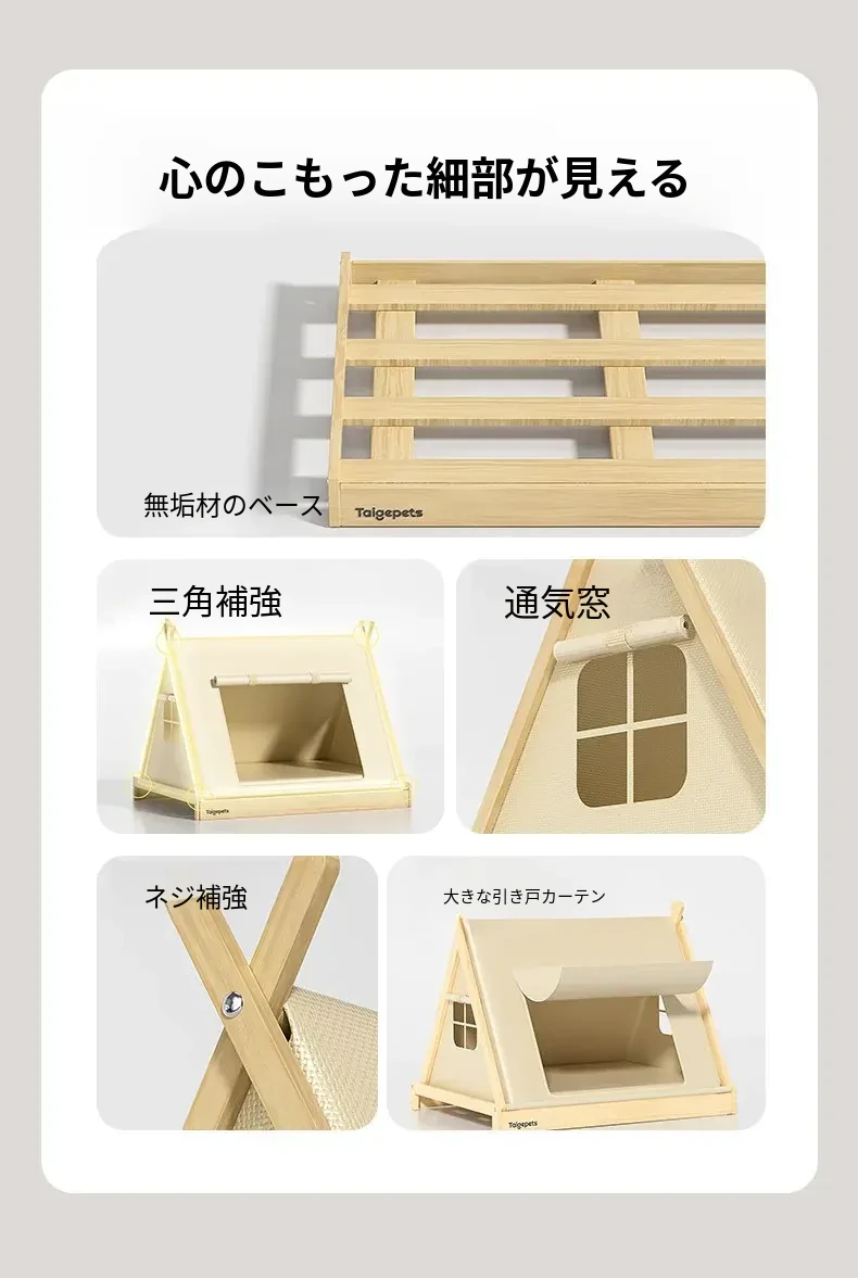 天然木製キャットテント!四季使えるキャットベッド、ペットソファ。夏にぴったりの半封閉型で、安心感を提供する猫のハウス!愛猫のための快適空間をお届けします。