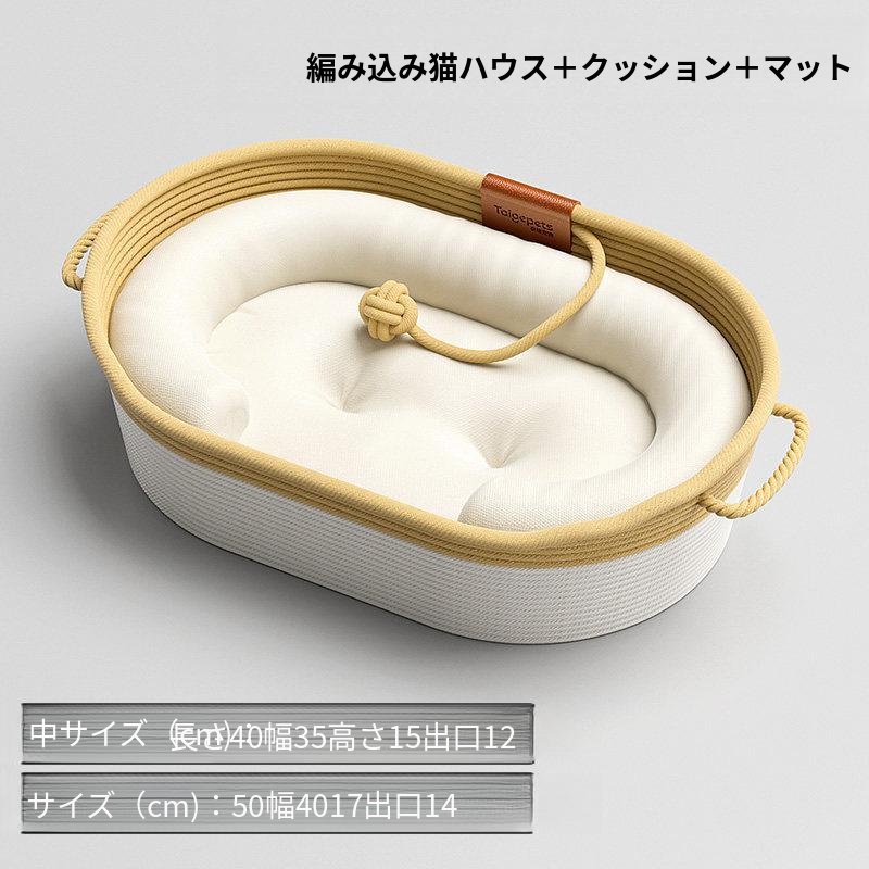 編み猫ハウス+綿マット+枕
