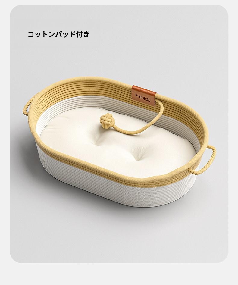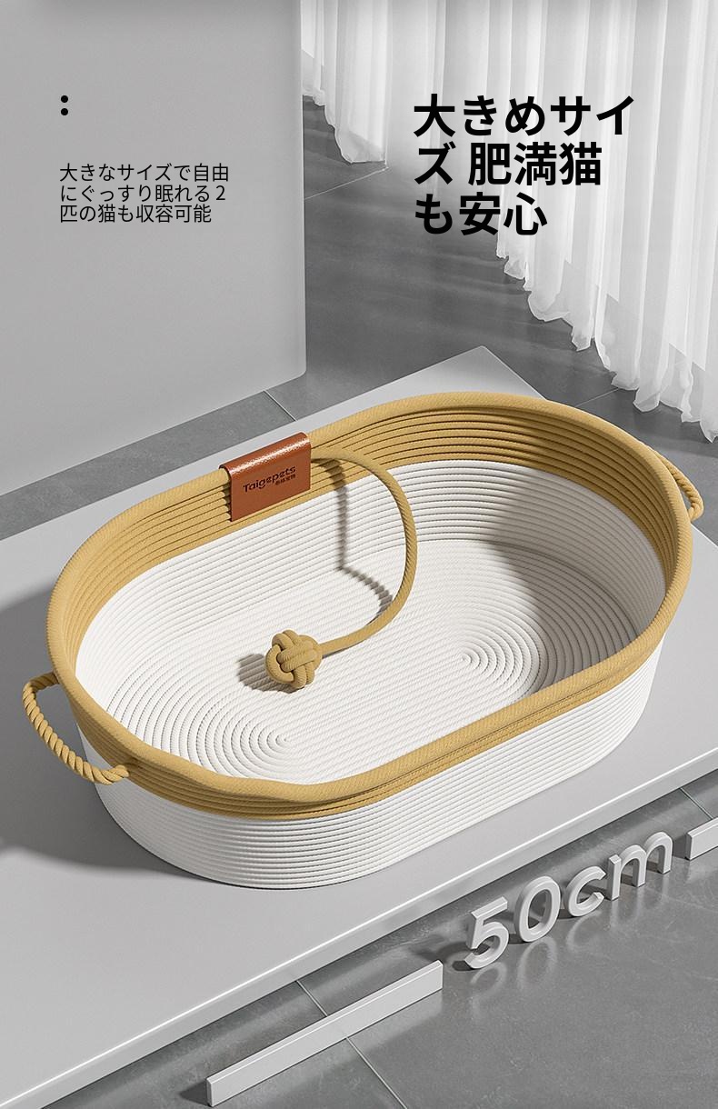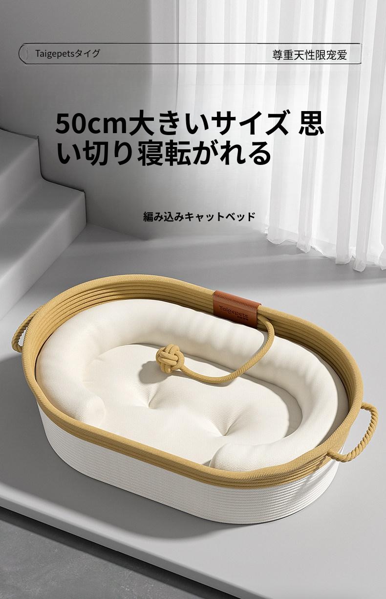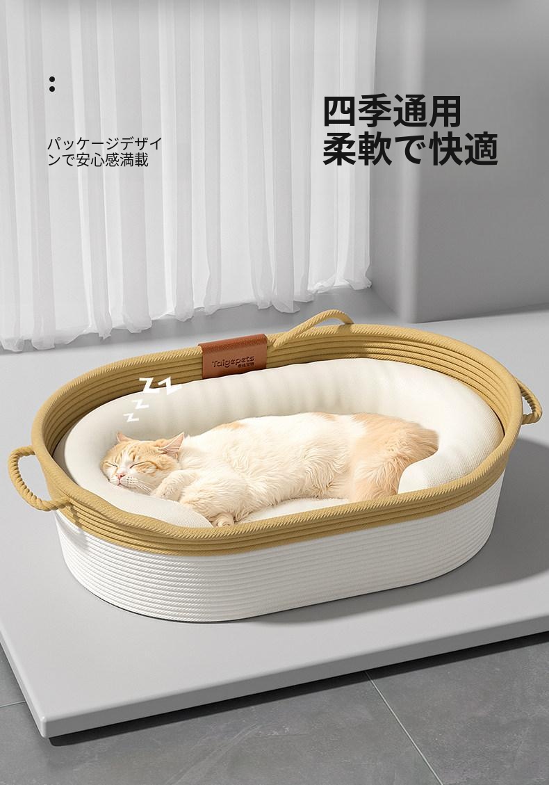 秋冬にぴったり!猫ちゃんが安心して眠れる藤編みの半封閉式キャットベッド。四季を通じて快適な温かさを提供し、愛猫のための理想的な寝床です。