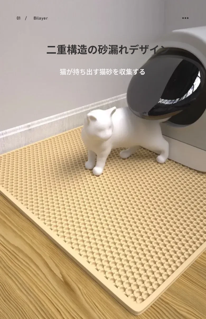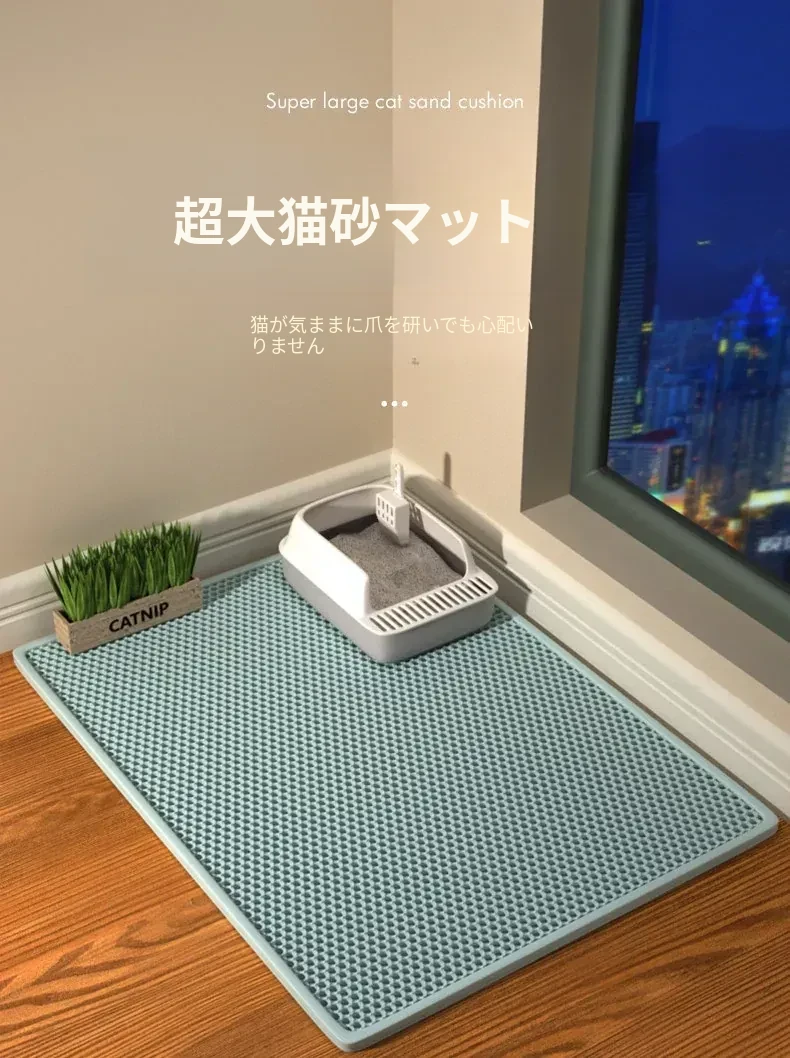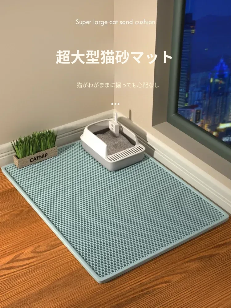 超大サイズ!猫砂防止マット - 二重フィルターでこぼれをシャットアウト!ペットの快適さを守る猫砂盆用マット、愛猫のための必需品!