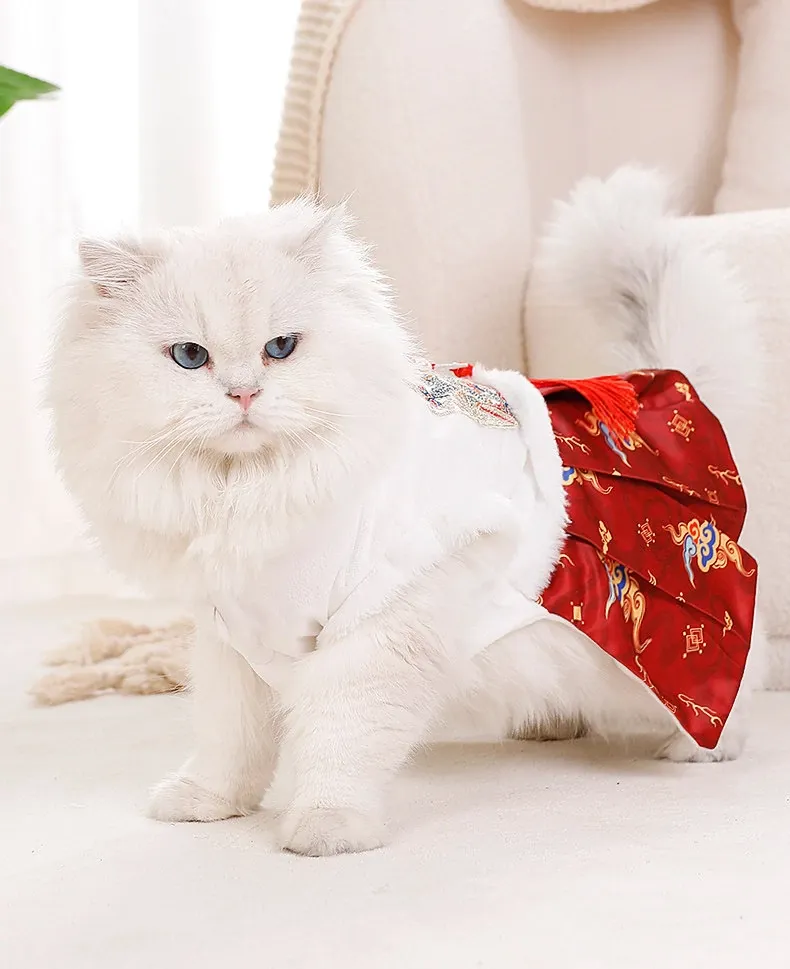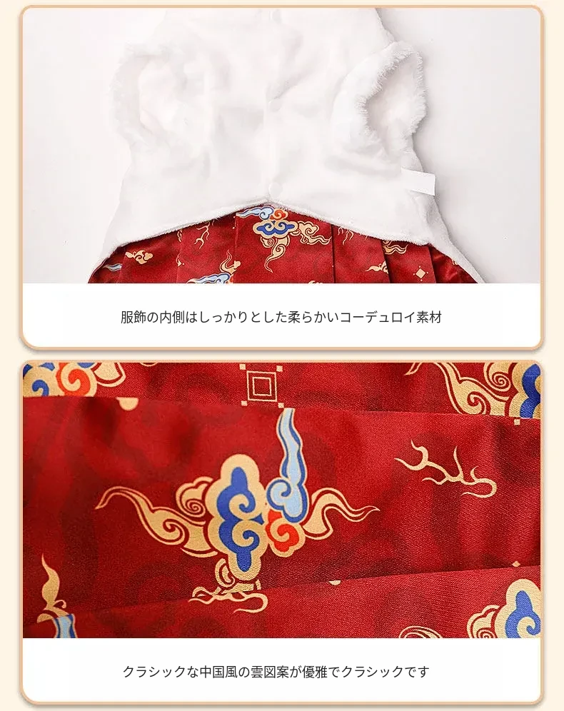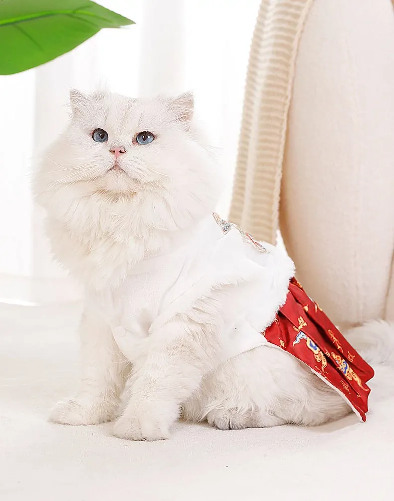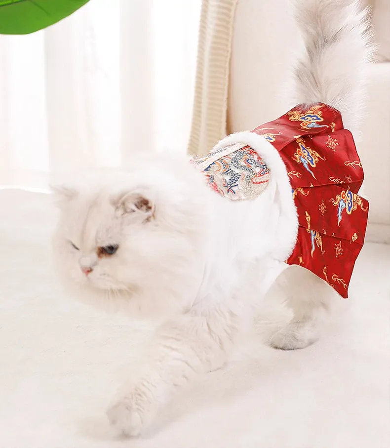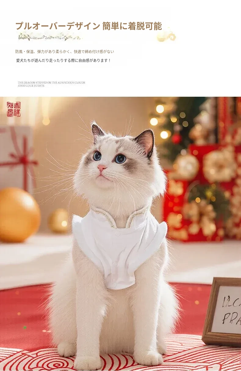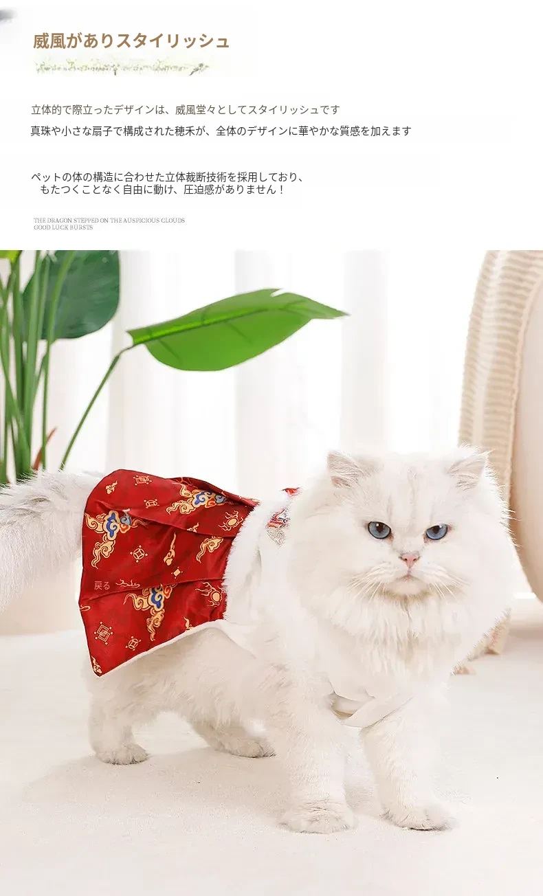 ペット用プリンセスドレス 猫ちゃん・犬ちゃんにぴったり!ママ面スタイルの布偶ブルーキャット&小犬用の新年衣装。冬の暖かさを楽しみながら、華やかな唐装でお正月をお祝いしよう!