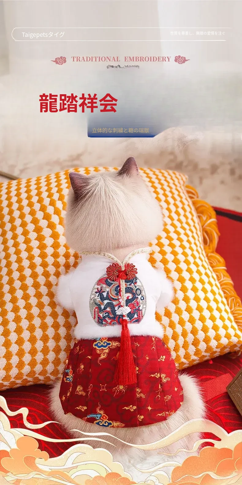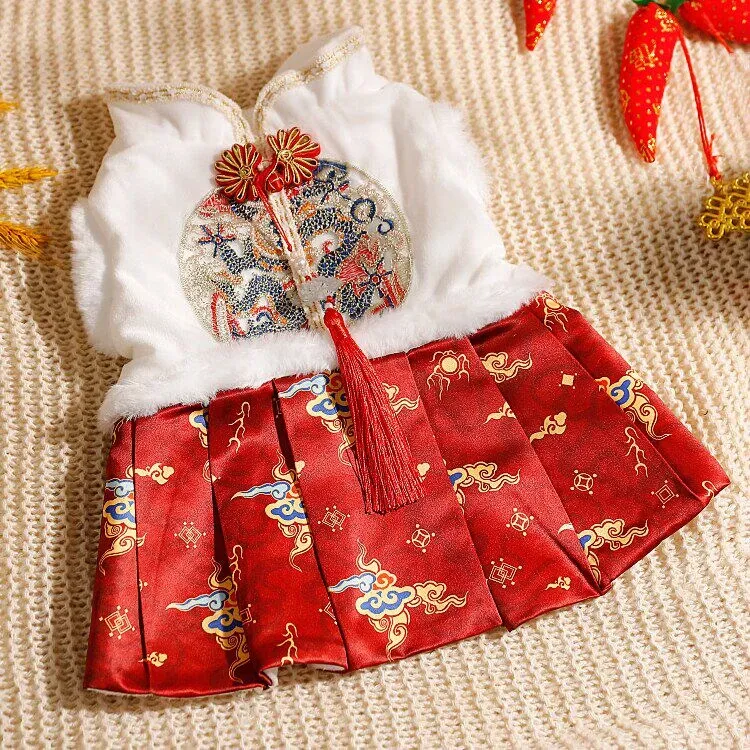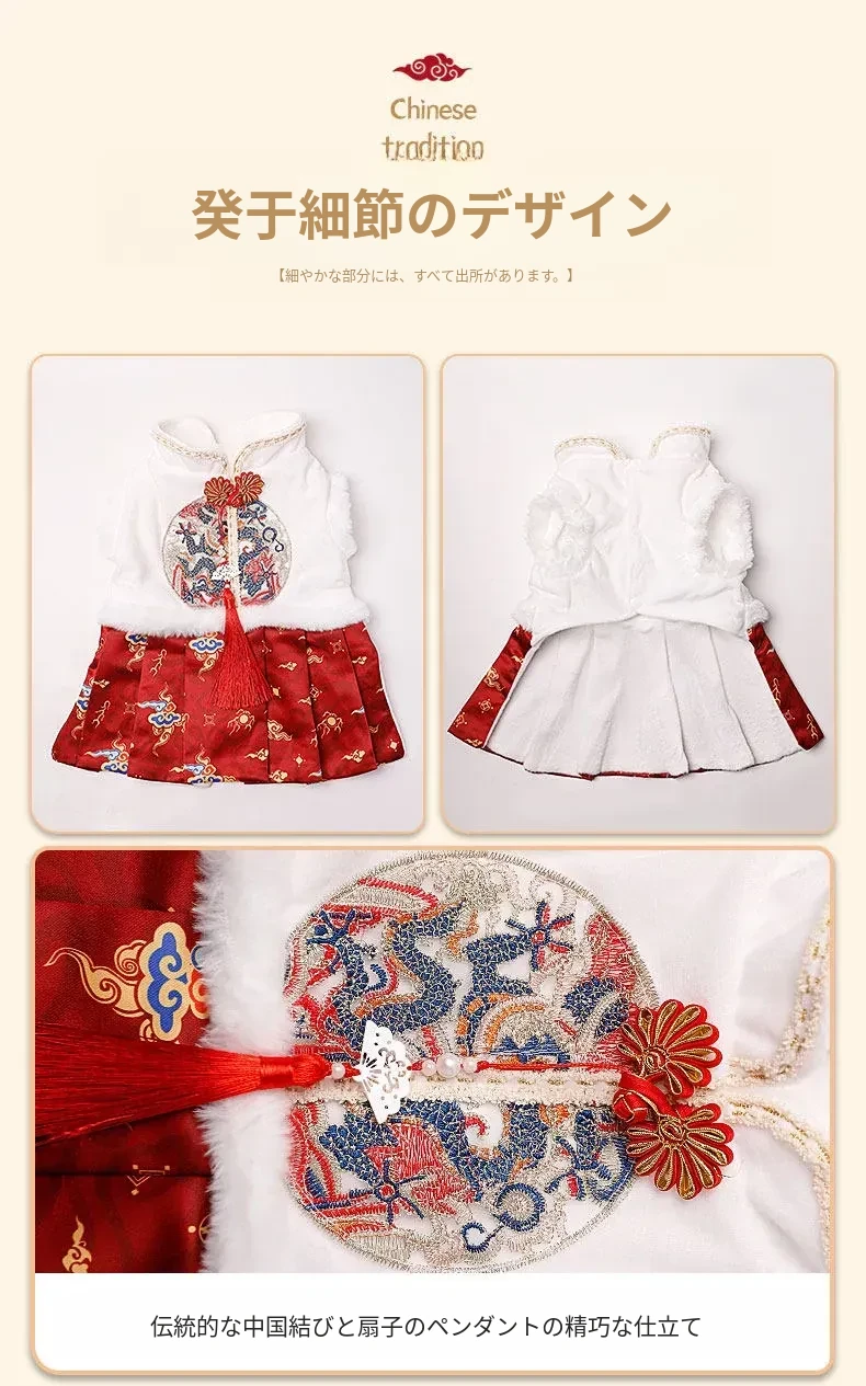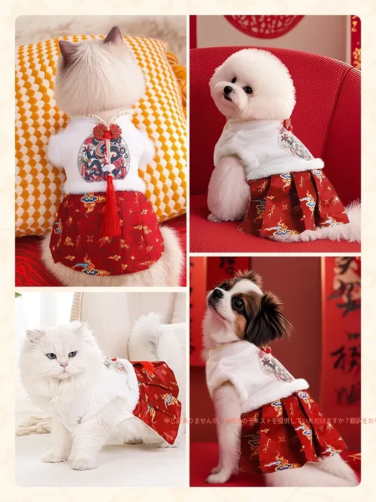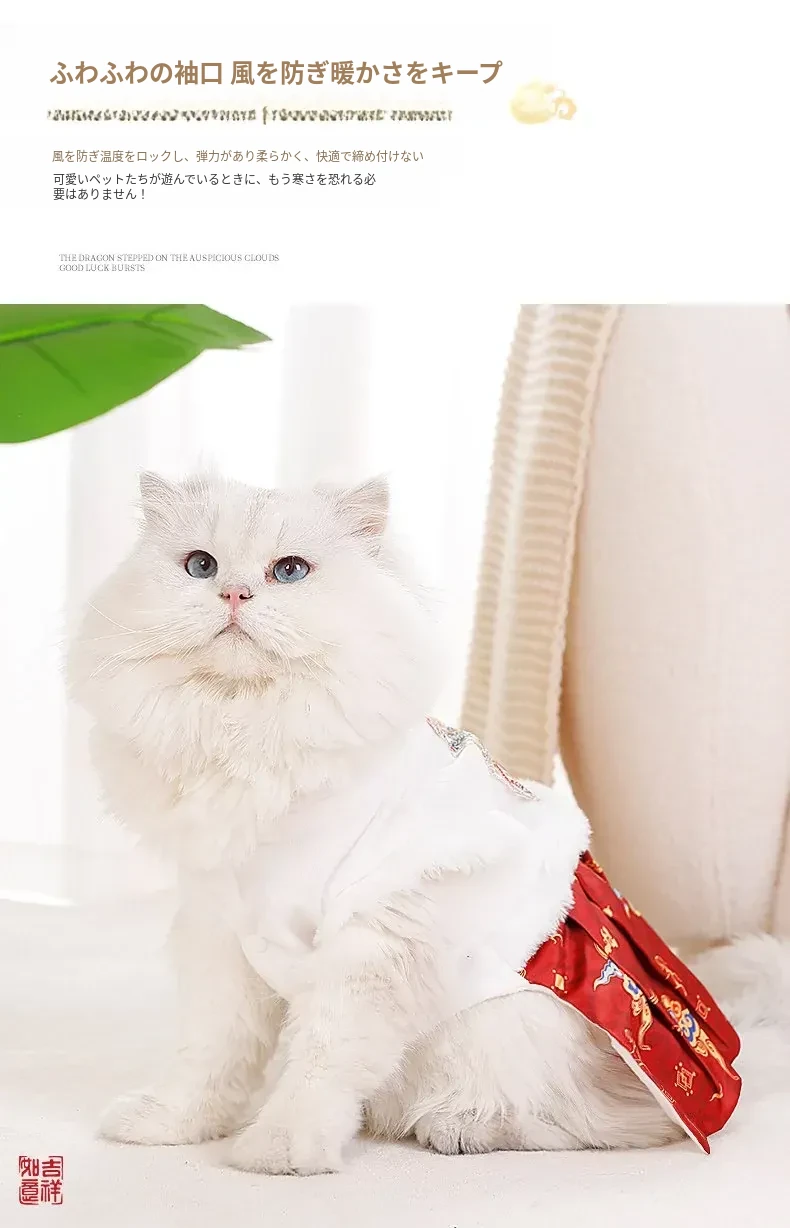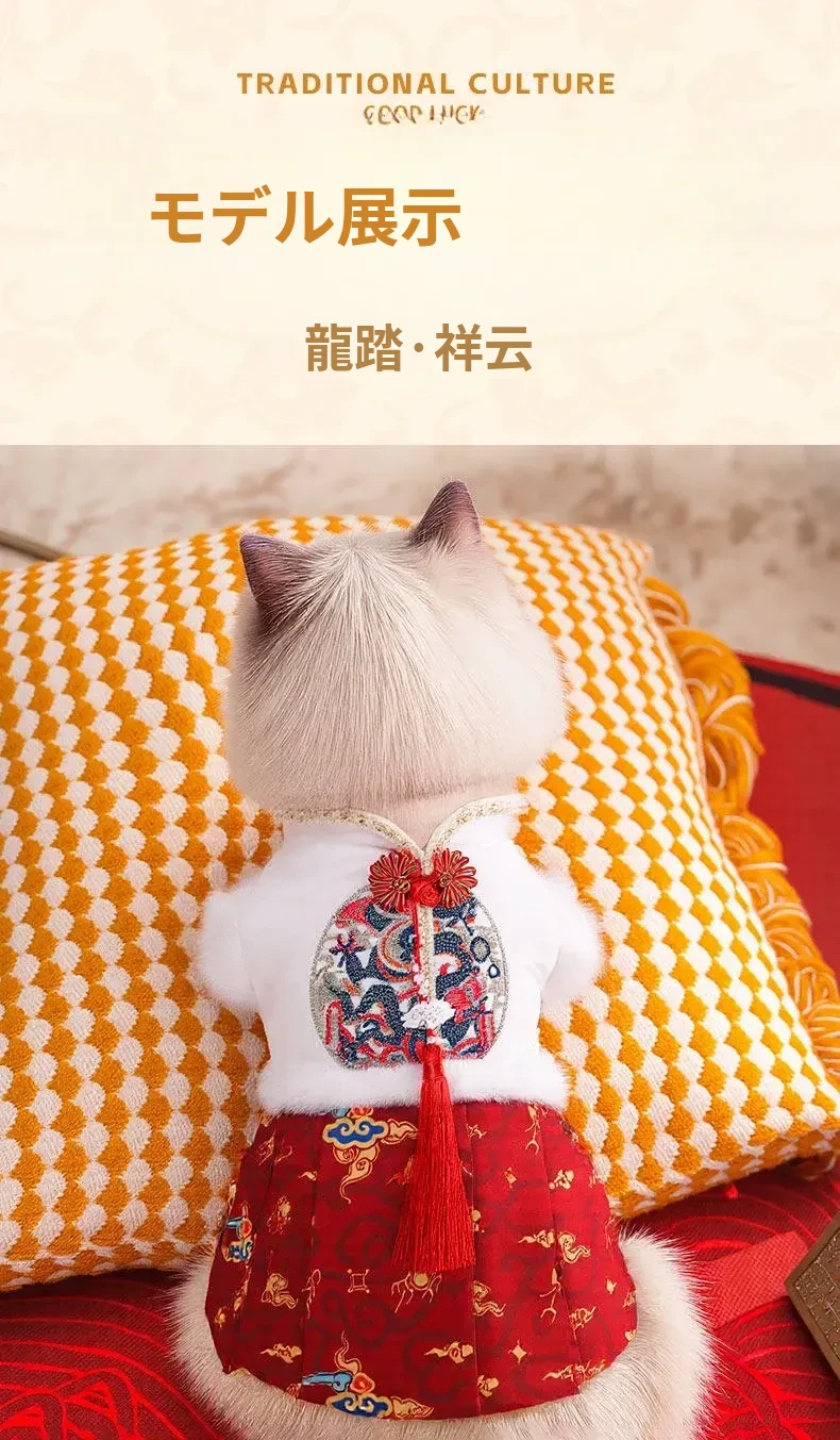 ペット用プリンセスドレス 猫ちゃん・犬ちゃんにぴったり!ママ面スタイルの布偶ブルーキャット&小犬用の新年衣装。冬の暖かさを楽しみながら、華やかな唐装でお正月をお祝いしよう!