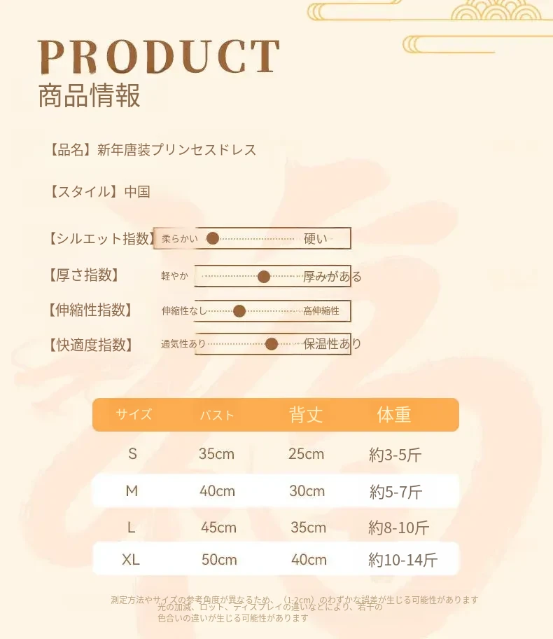 S【推奨体重3-5斤 胸囲と背丈の参考】