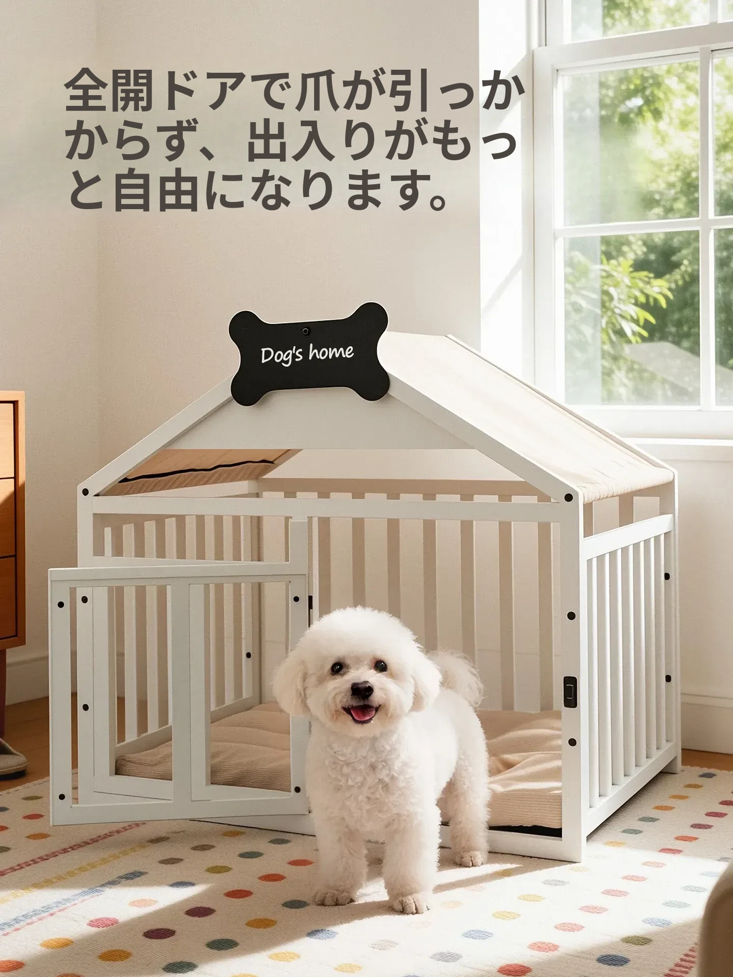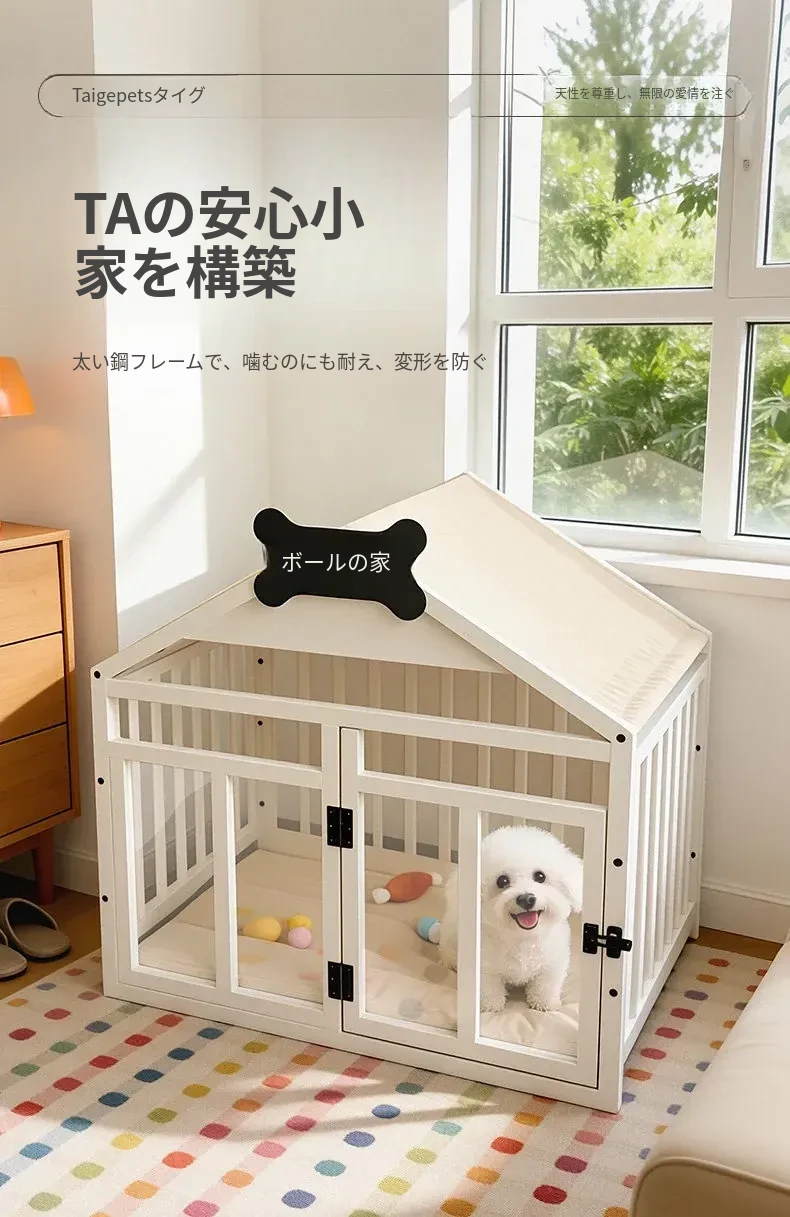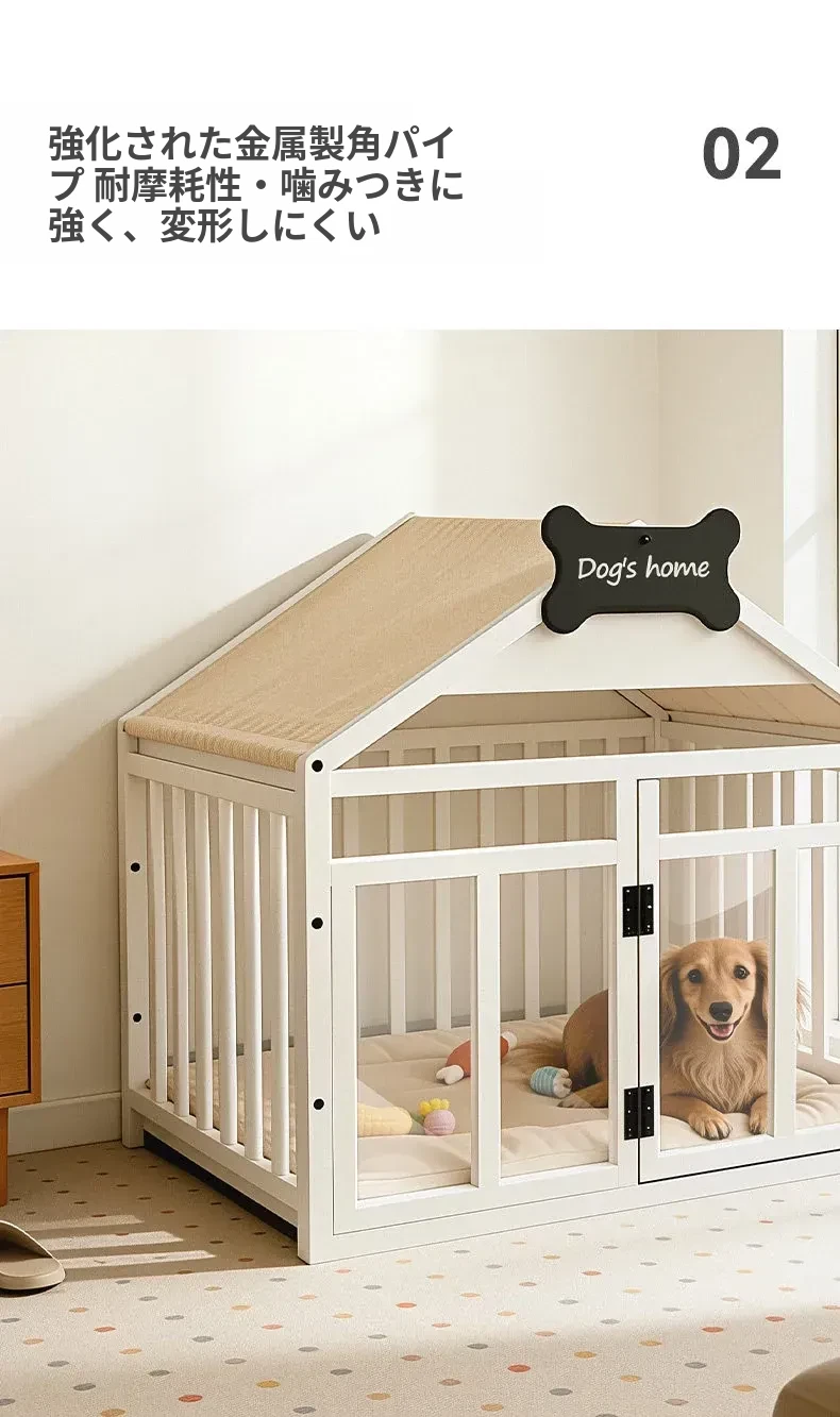 豪華な犬用ヴィラ!室内で中小型犬に最適な頑丈な鉄パイプ製の犬小屋。ビション・フリーゼやトイプードル、ポメラニアンなどのペットにぴったり!快適で安全な空間を提供します。