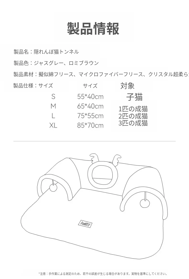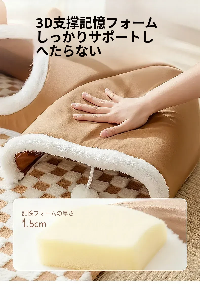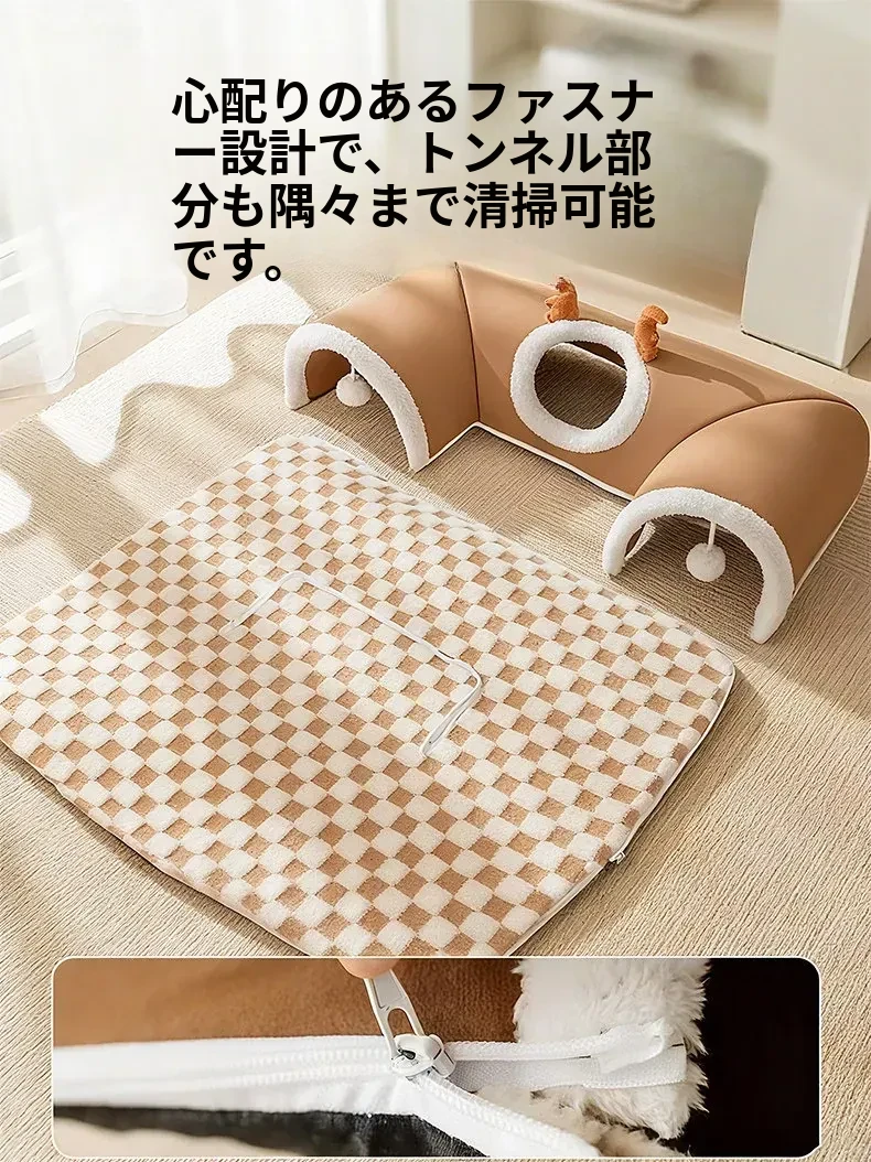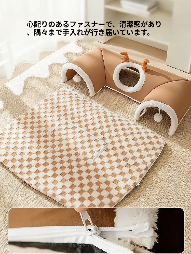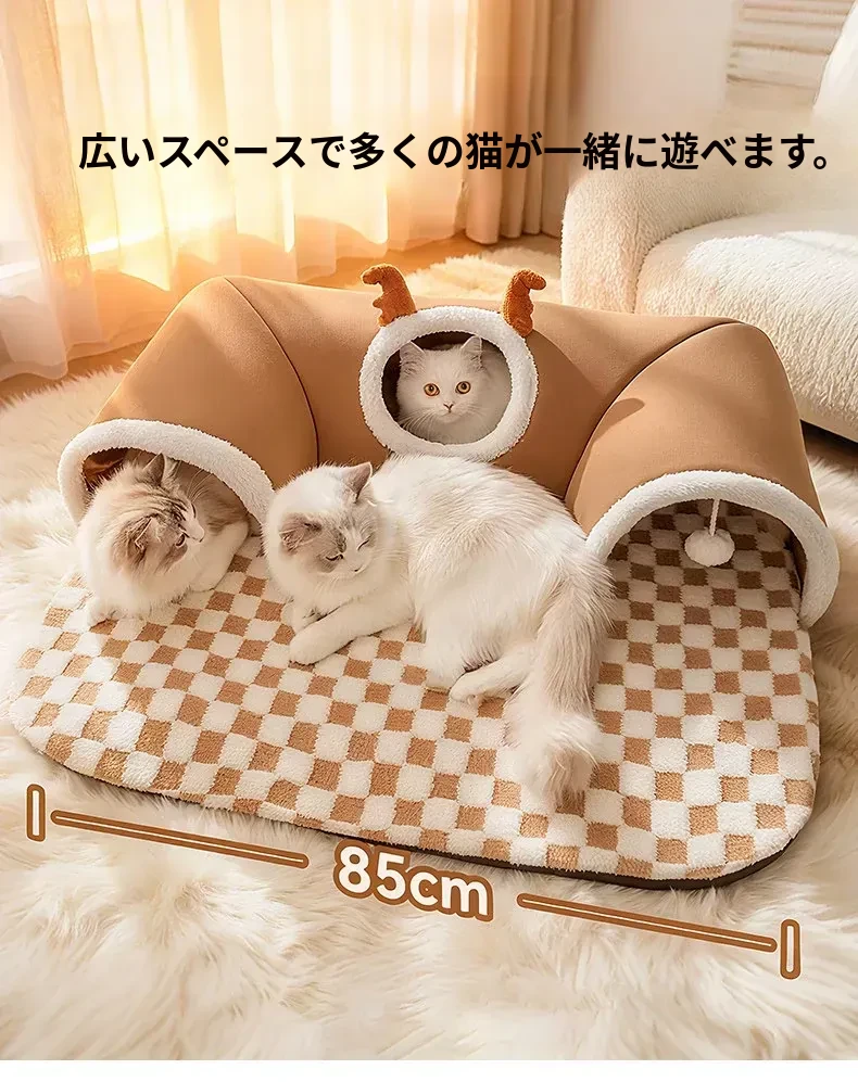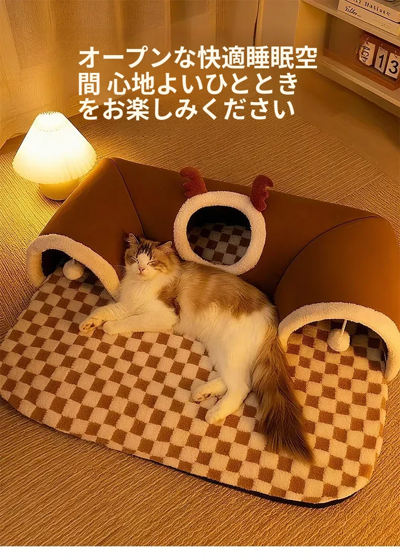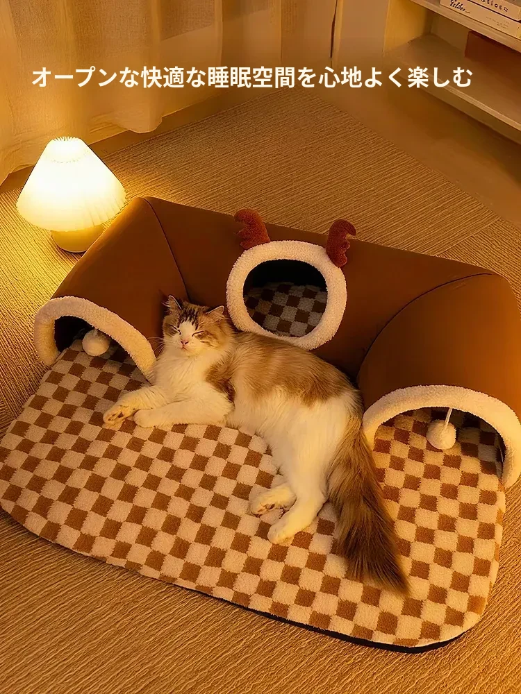 キャットトンネル&ベッド - 四季に対応、超大容量で安心感抜群!子猫も安心して隠れられるドア穴付きの封閉式デザイン。あなたの猫ちゃんに快適な睡眠空間を提供します!